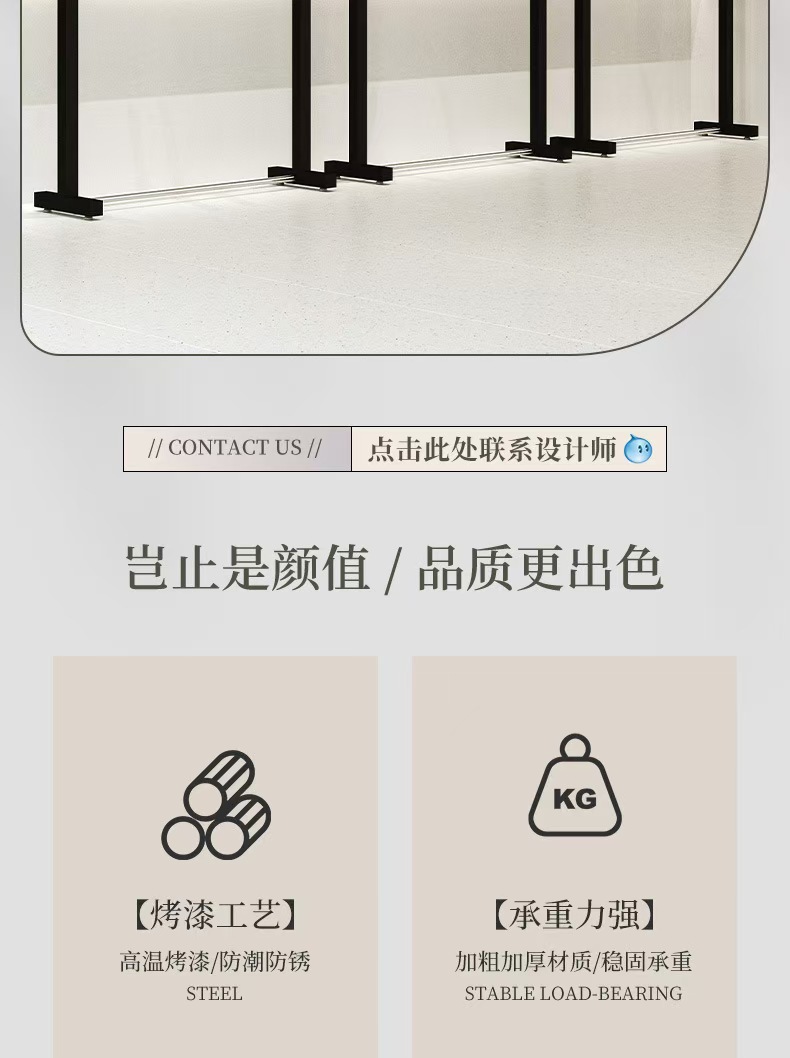 洋服店展示棚車輪付き水道ハンガー中島服装棚移動陳列棚横掛けハンガー着地