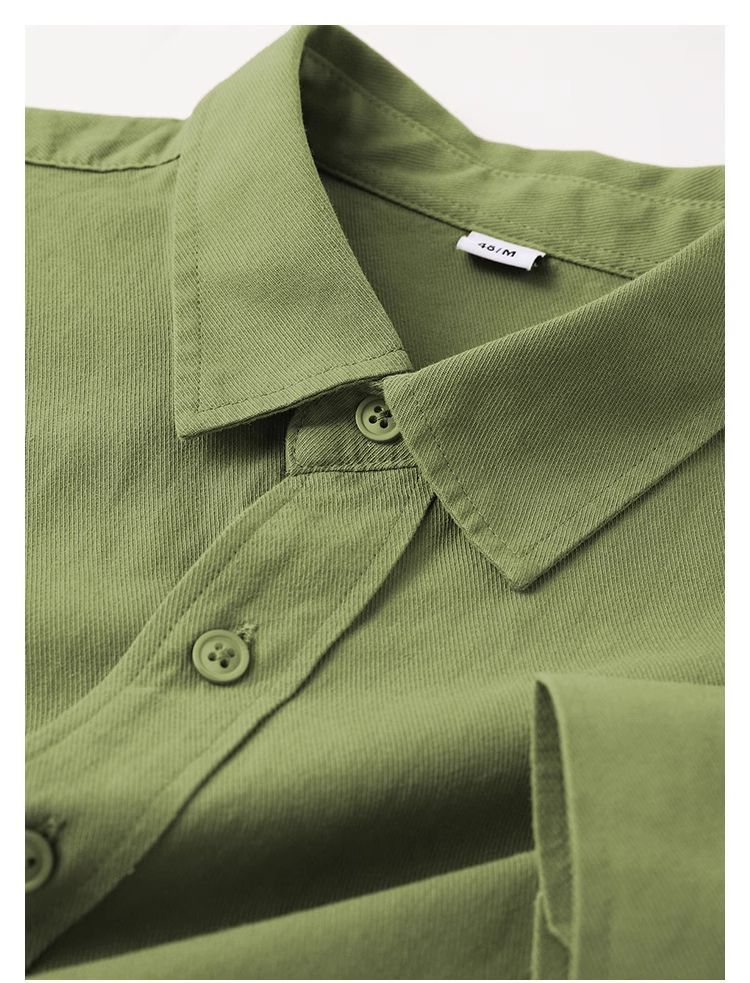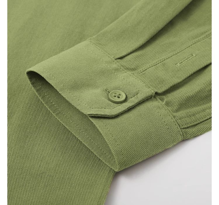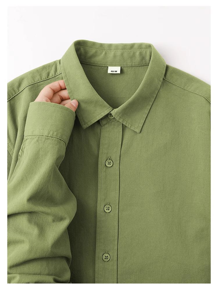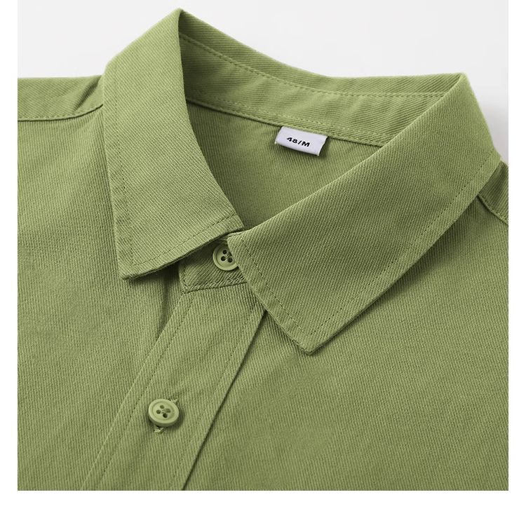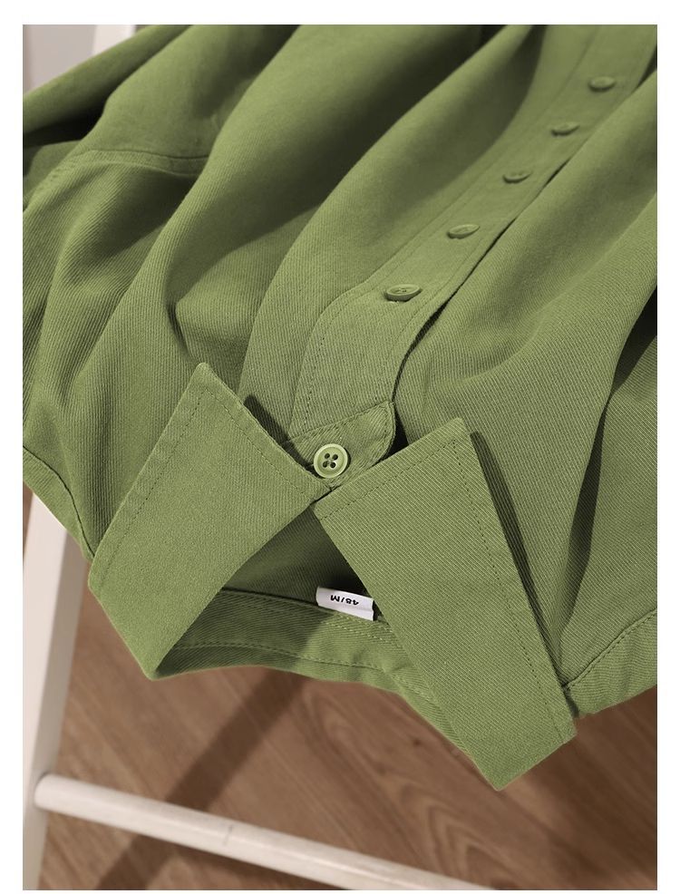 春日植物系穿搭~显白牛油果绿纯棉长袖衬衫女多巴胺纯色衬衣外套