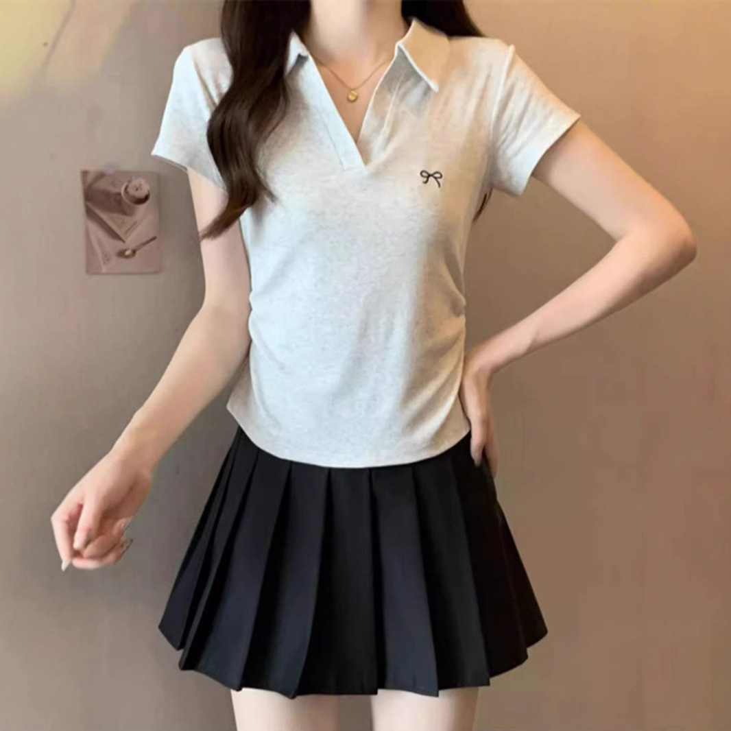 大きいサイズのカジュアルな半袖tシャツの婦人服の夏の肩のpoloのシャツの大衆のデザイン感の太っているMMは肉を遮ってやせている上着を現します。