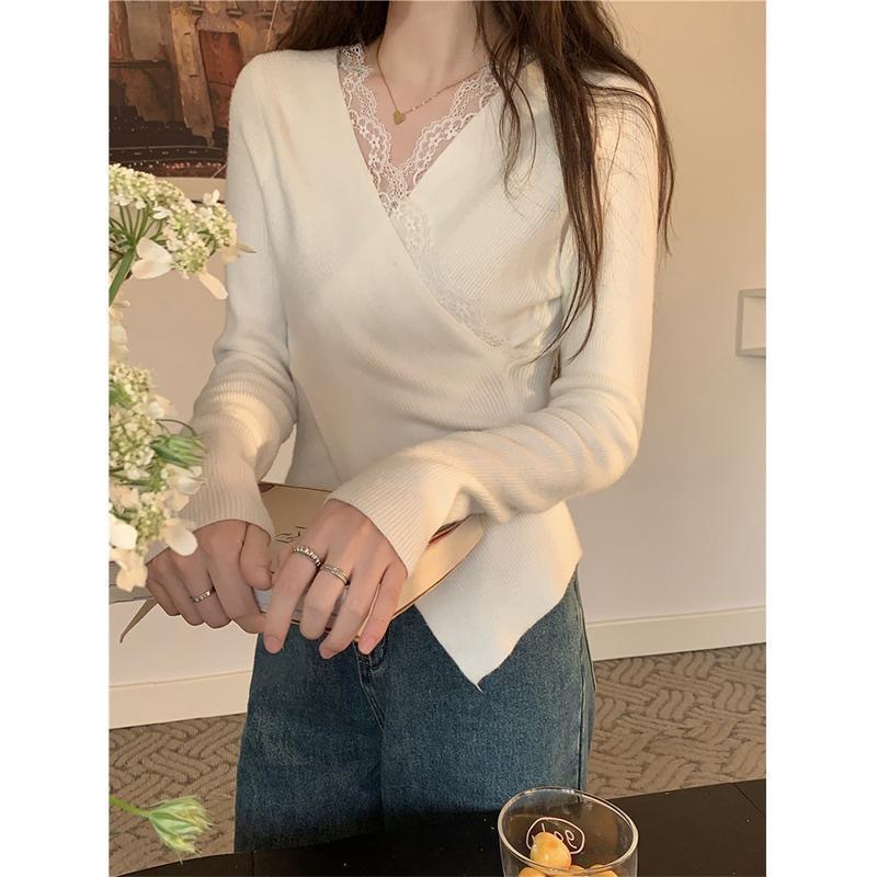 フランスの杏色vネックのクロスレースの中に底のシャツを掛けます。
