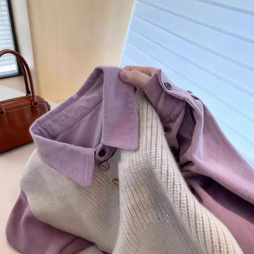 紫色灯芯绒长袖衬衫女设计感百搭2025新款内搭外穿宽松上衣衬衣外