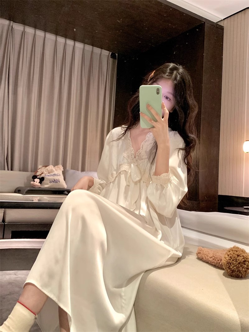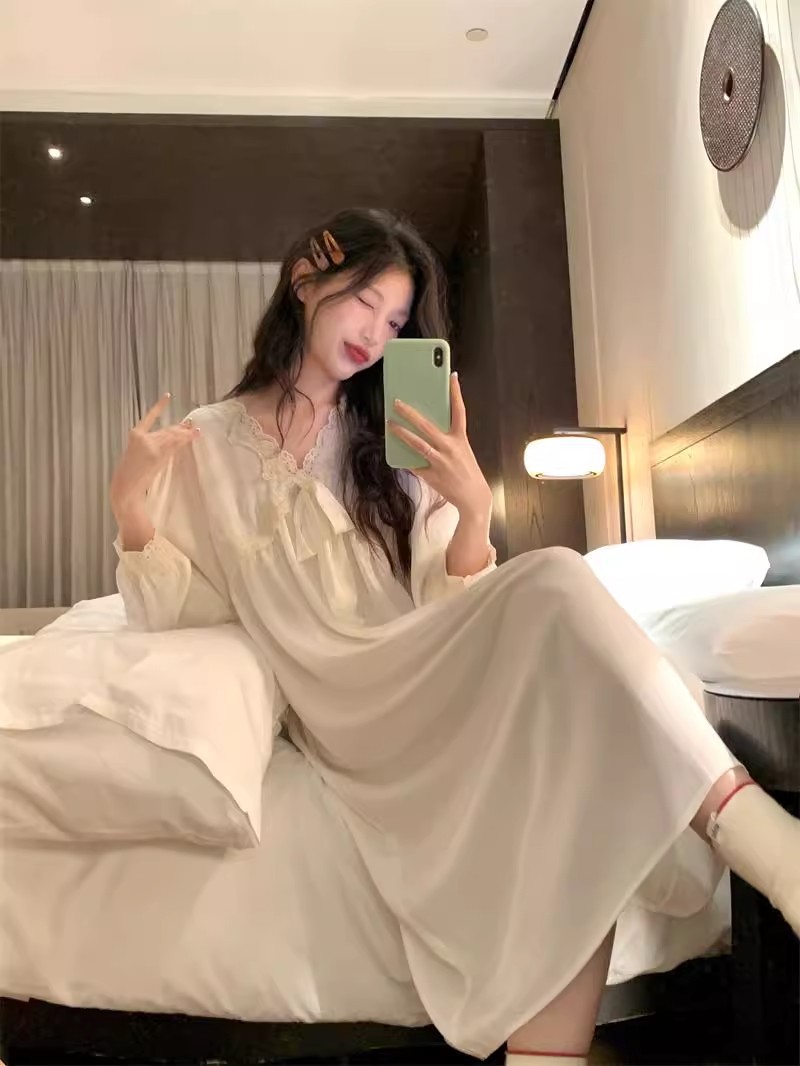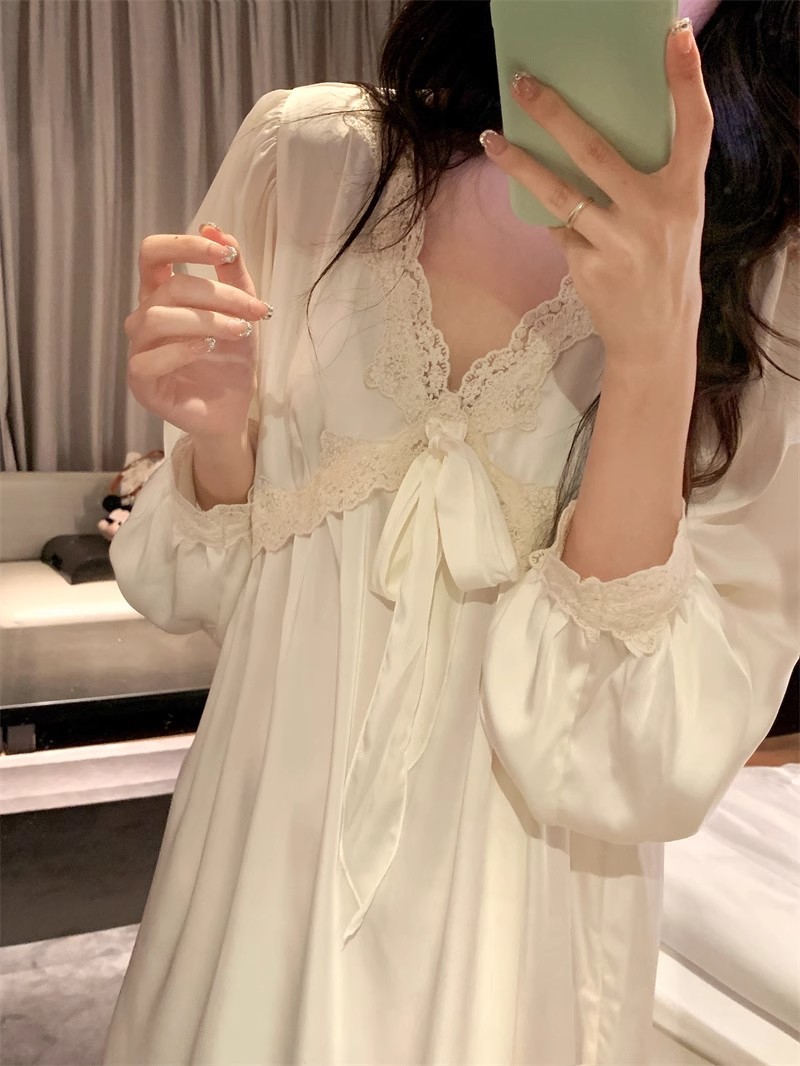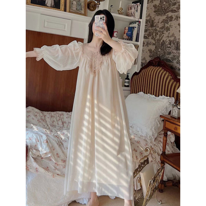 フランス式プリンセス風寝スカート女性春秋宮廷風長袖胸パッド付きアンドロメダ仙気感連衣寝スカート超仙