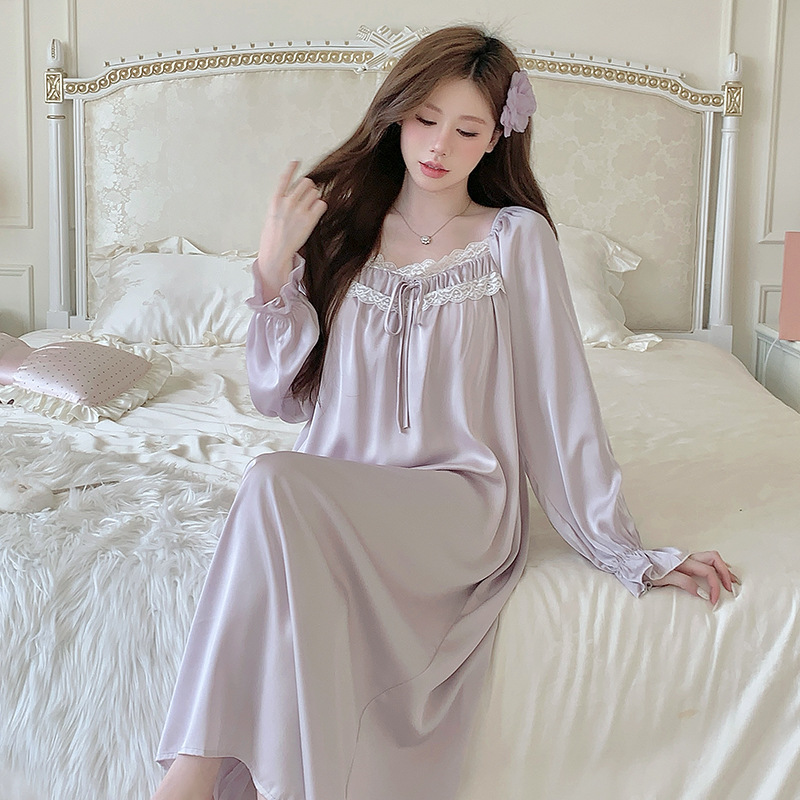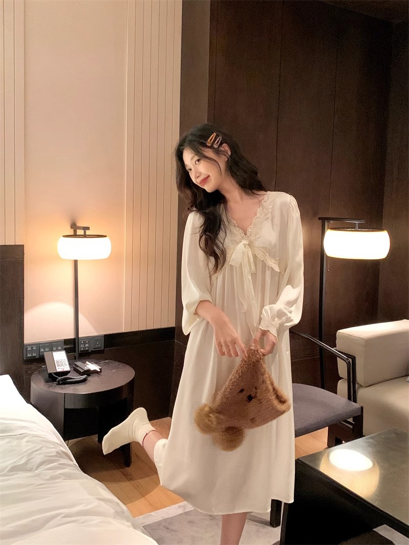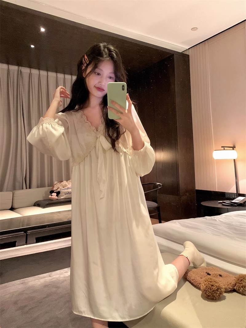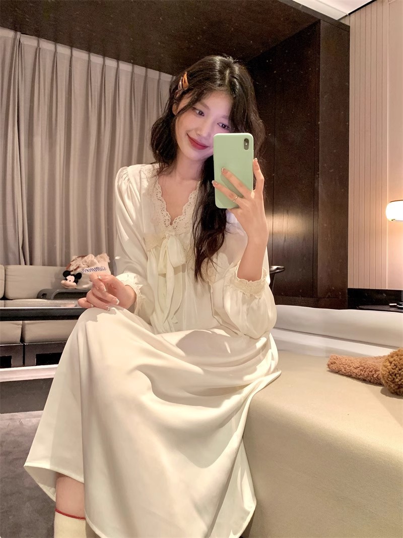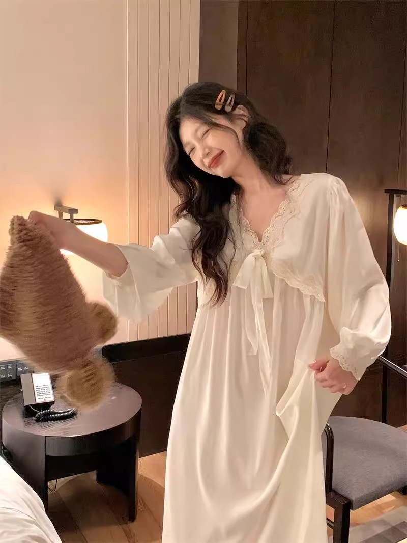 フランス式プリンセス風寝スカート女性春秋宮廷風長袖胸パッド付きアンドロメダ仙気感連衣寝スカート超仙
