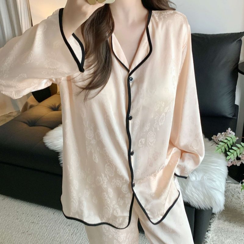 氷糸高级感パジャマレディース春秋2025新作ジャカードファッションレースアウターホームウェアスーツ