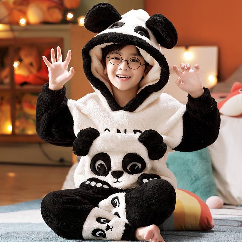 子供用パジャマ男児コーラルベルベット秋冬フランネル丸襟男の子漫画中大童ホームウェアセット