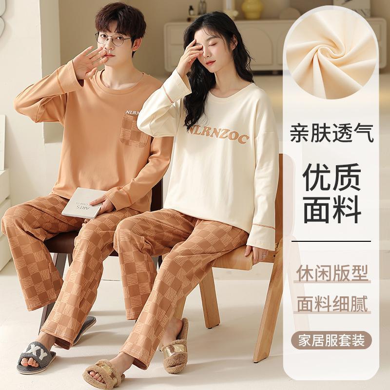 カップルのパジャマの新しいパジャマの女性の春と秋の純綿の長袖のズボンの家庭服のスーツの男性は外でスーツを着ることができます。