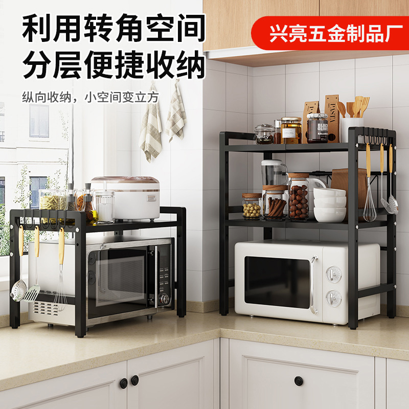 厨房微波炉置物架烤箱收纳架可随意伸缩家用台面二层加高电饭煲架