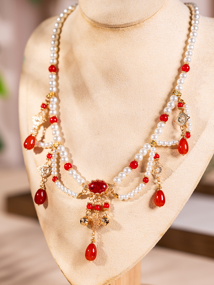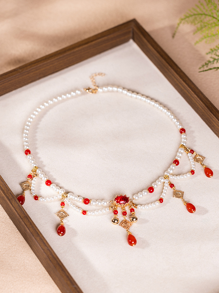 韓服ネックレス古代スタイルソフトネックレス唐スタイル宋王朝アクセサリー赤い水滴ペンダント中国風のネックレス国家スタイル