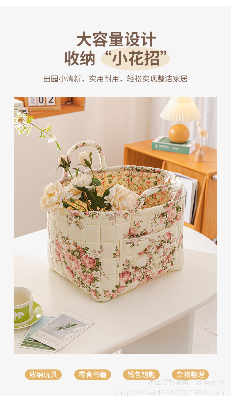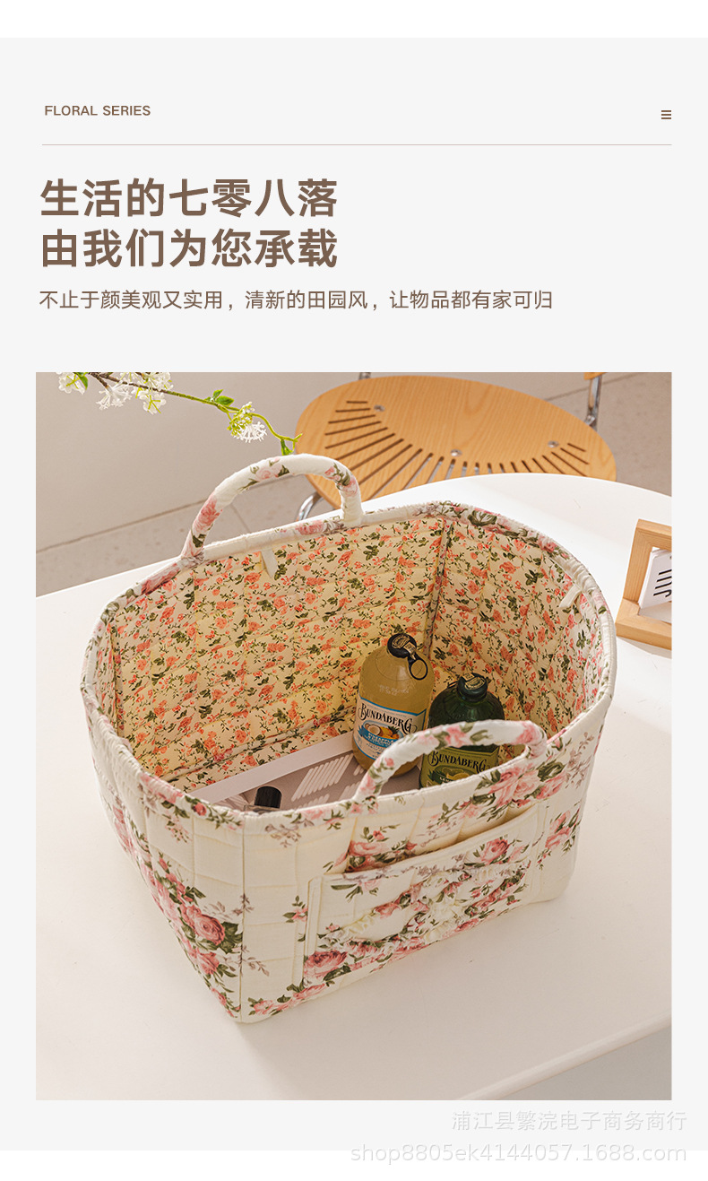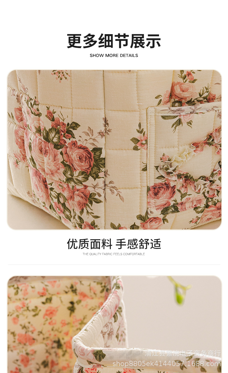 出口家居布艺碎花收纳盒田园风便携内衣袜子整理框机洗收纳筐厂家