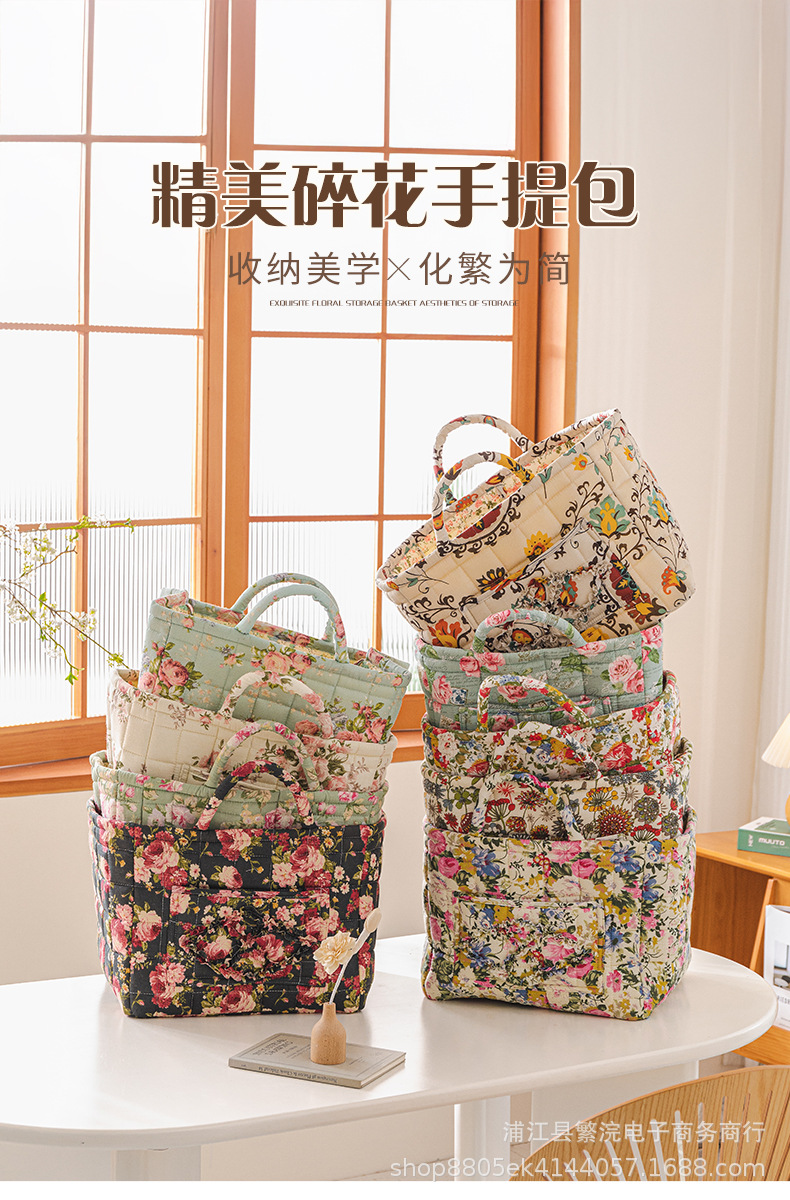 日韓風クロスボーダー スポンジ収納バッグ 衣類・おもちゃ用 ポータブル布製バッグ フレッシュな花柄 洗濯機洗い可能 雑貨入れ