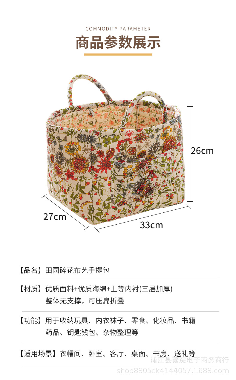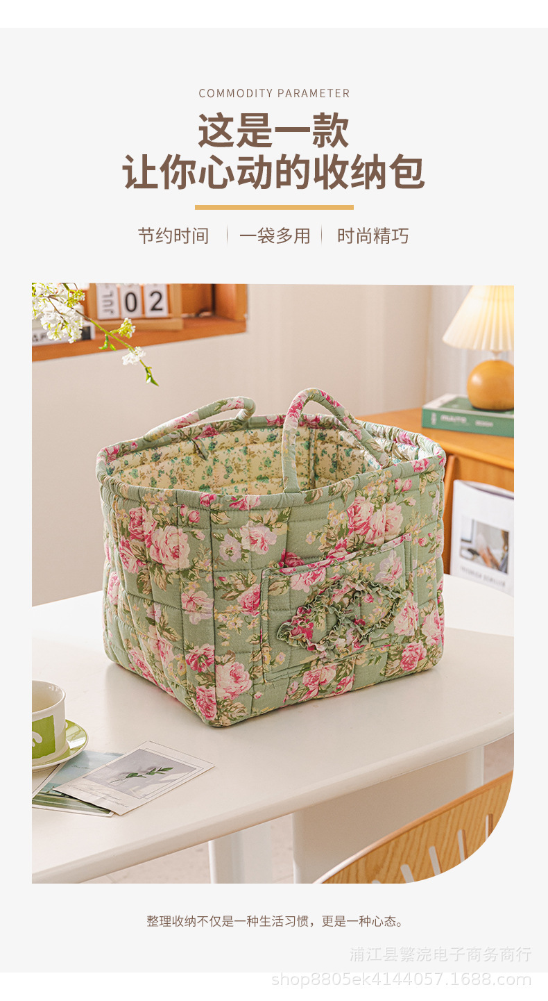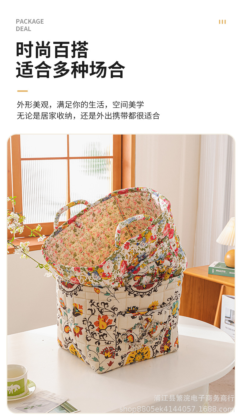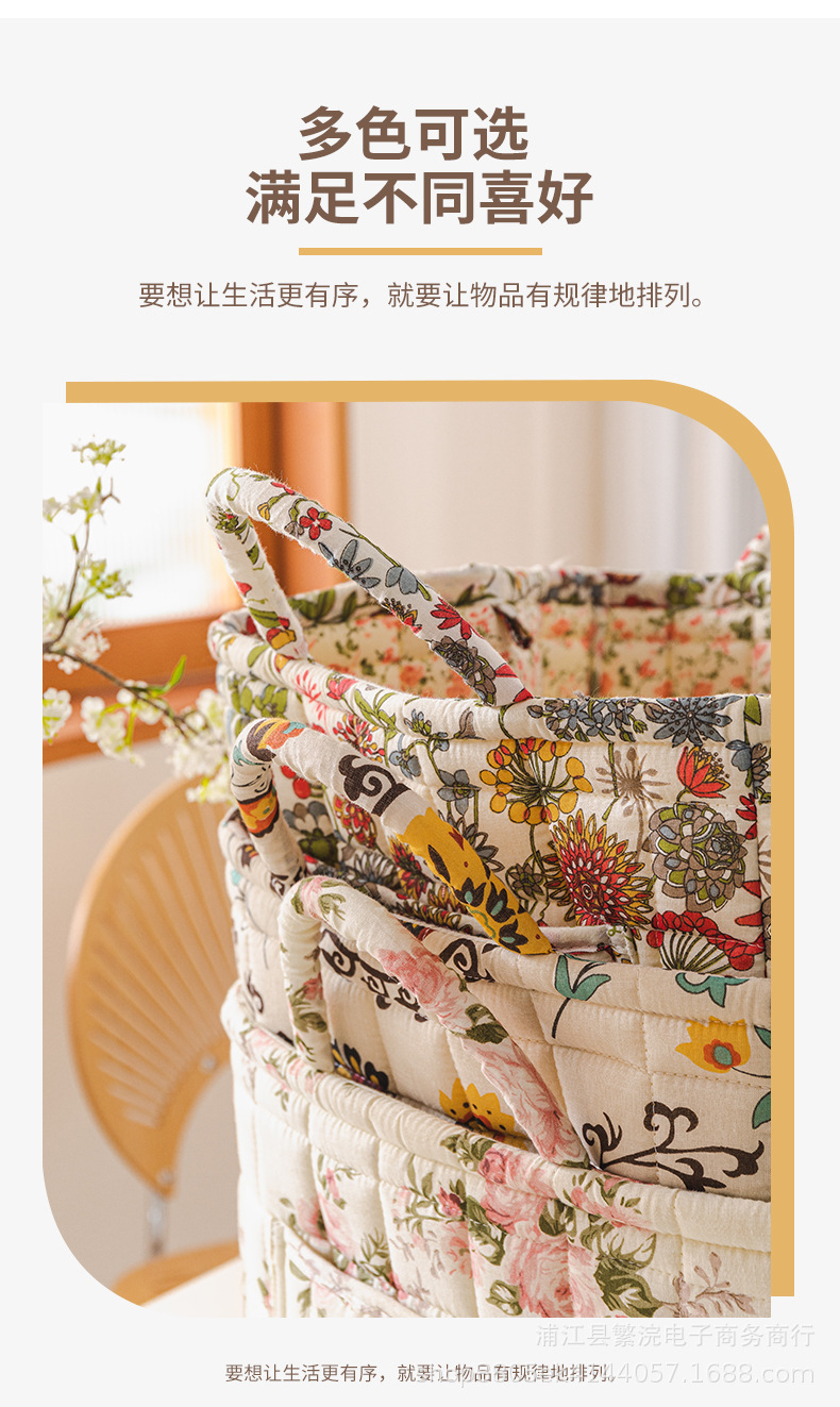 外国貿易用クロスボーダーコットン収納バスケット、花柄の田園風、下着、雑貨、書籍用、持ち運び可能な整理かご、洗濯機で洗える、大容量