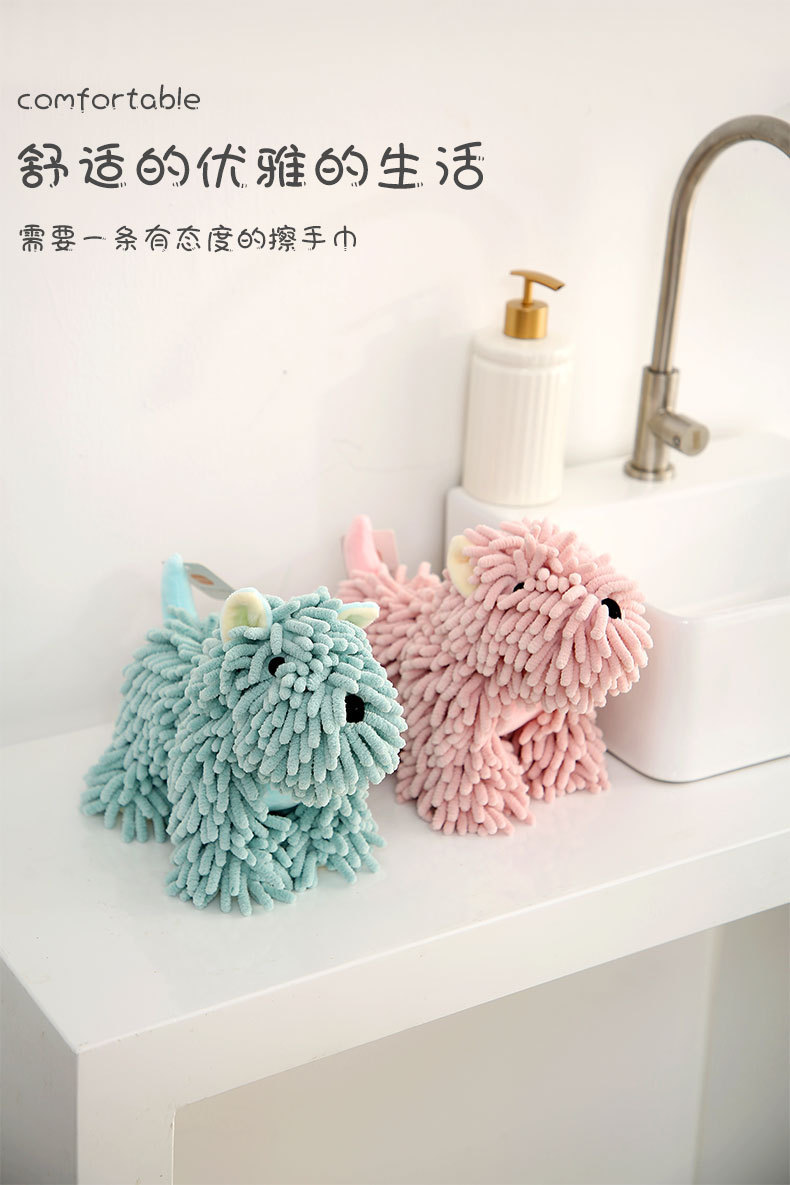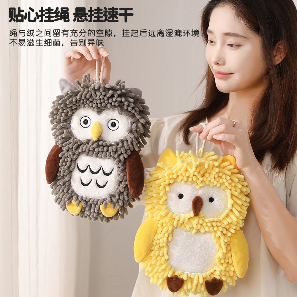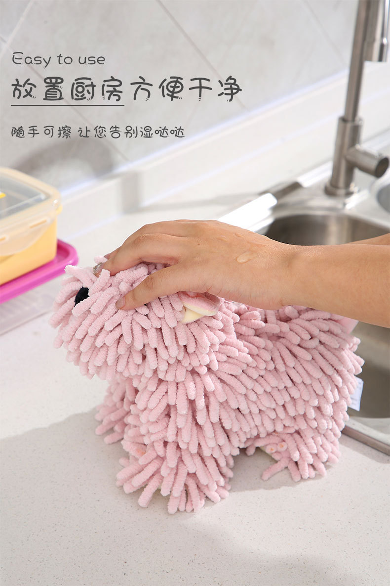 新款卡通动物雪尼尔擦手巾挂式加厚吸水擦手球厨房浴室家用大毛巾
