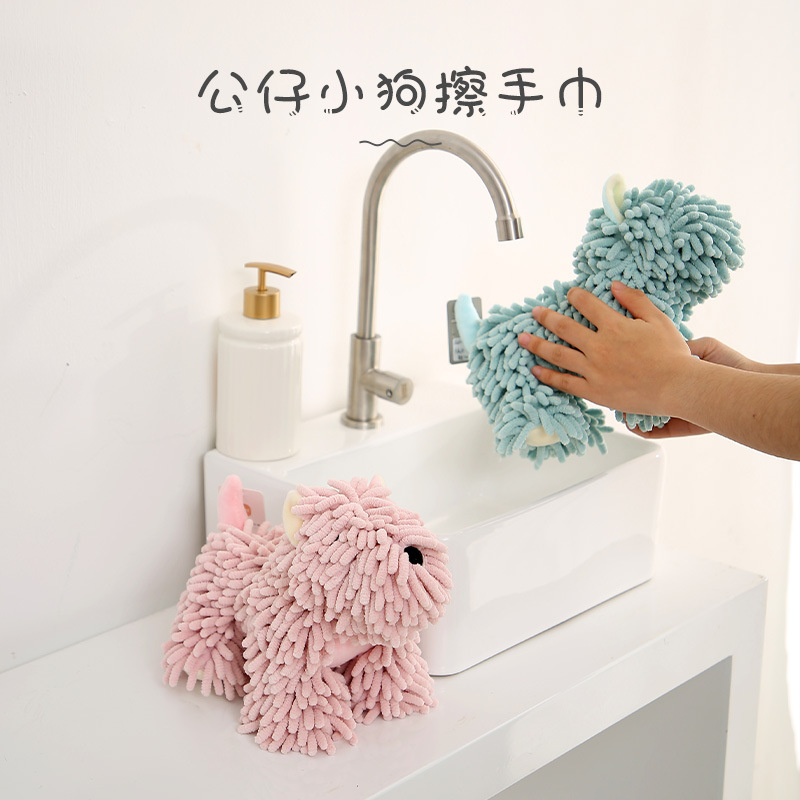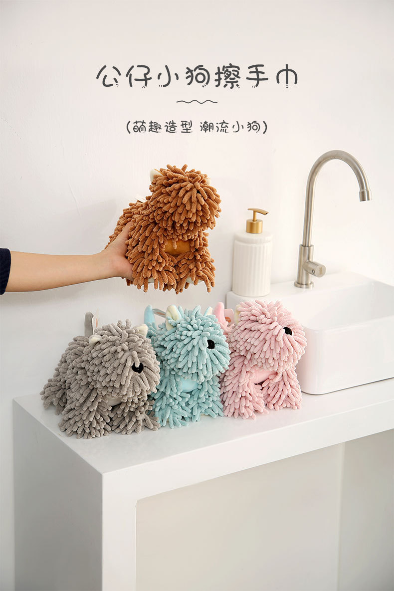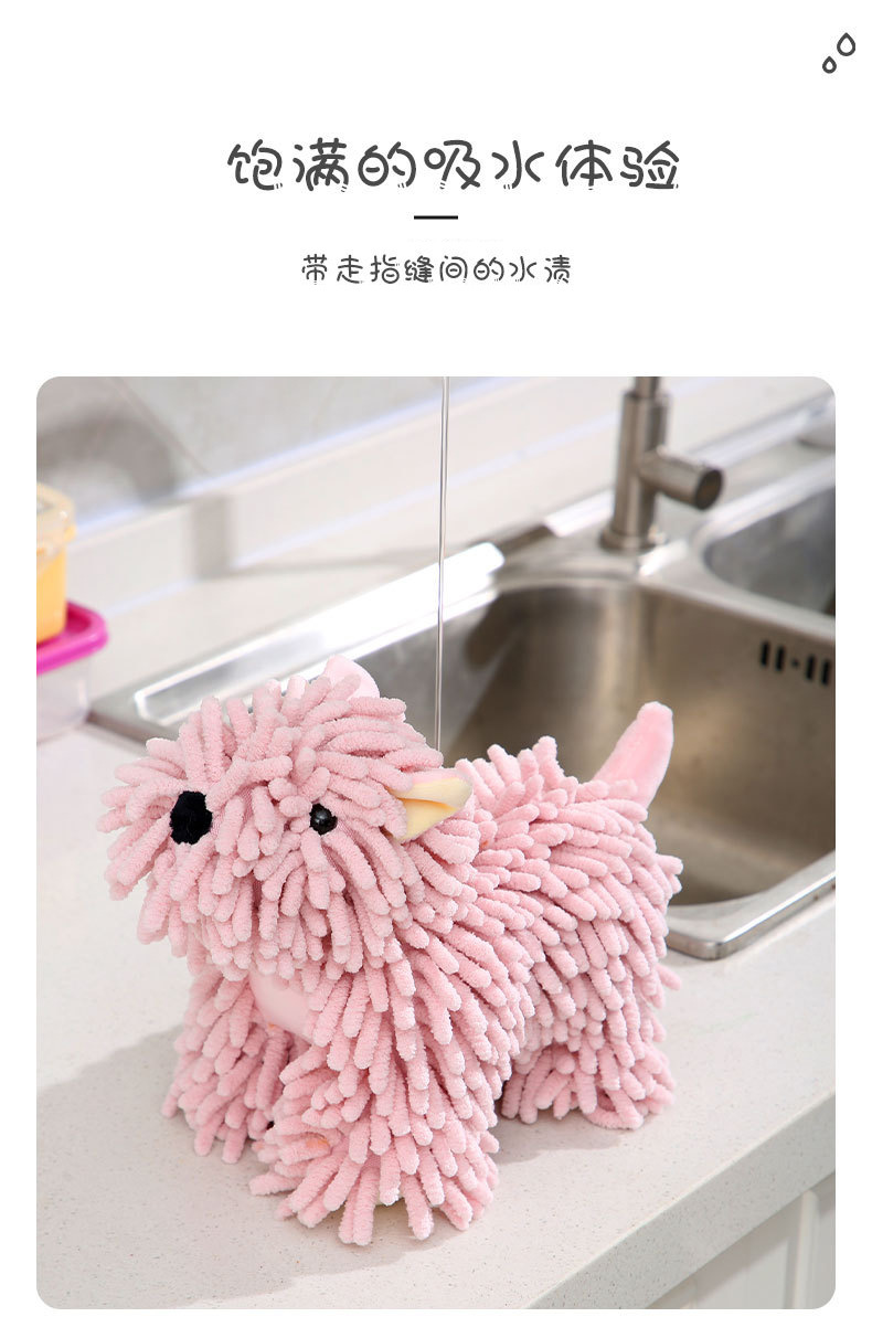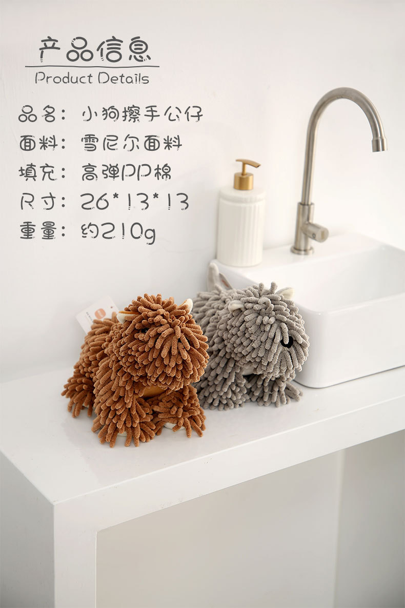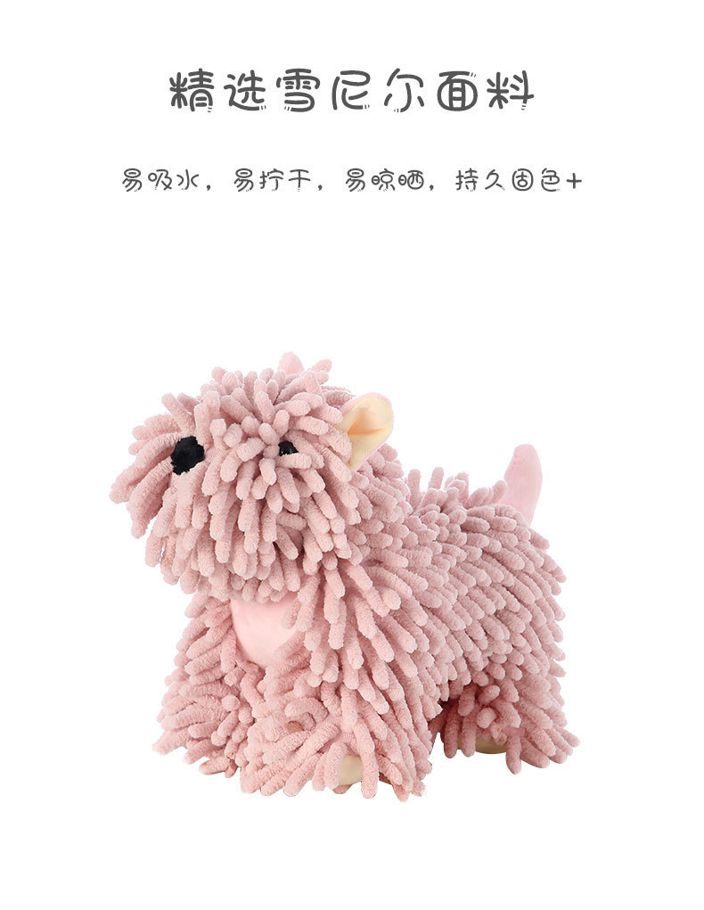 卡通小狗雪尼尔擦手公仔 多功能动物创吸水意擦手巾毛绒玩具批发