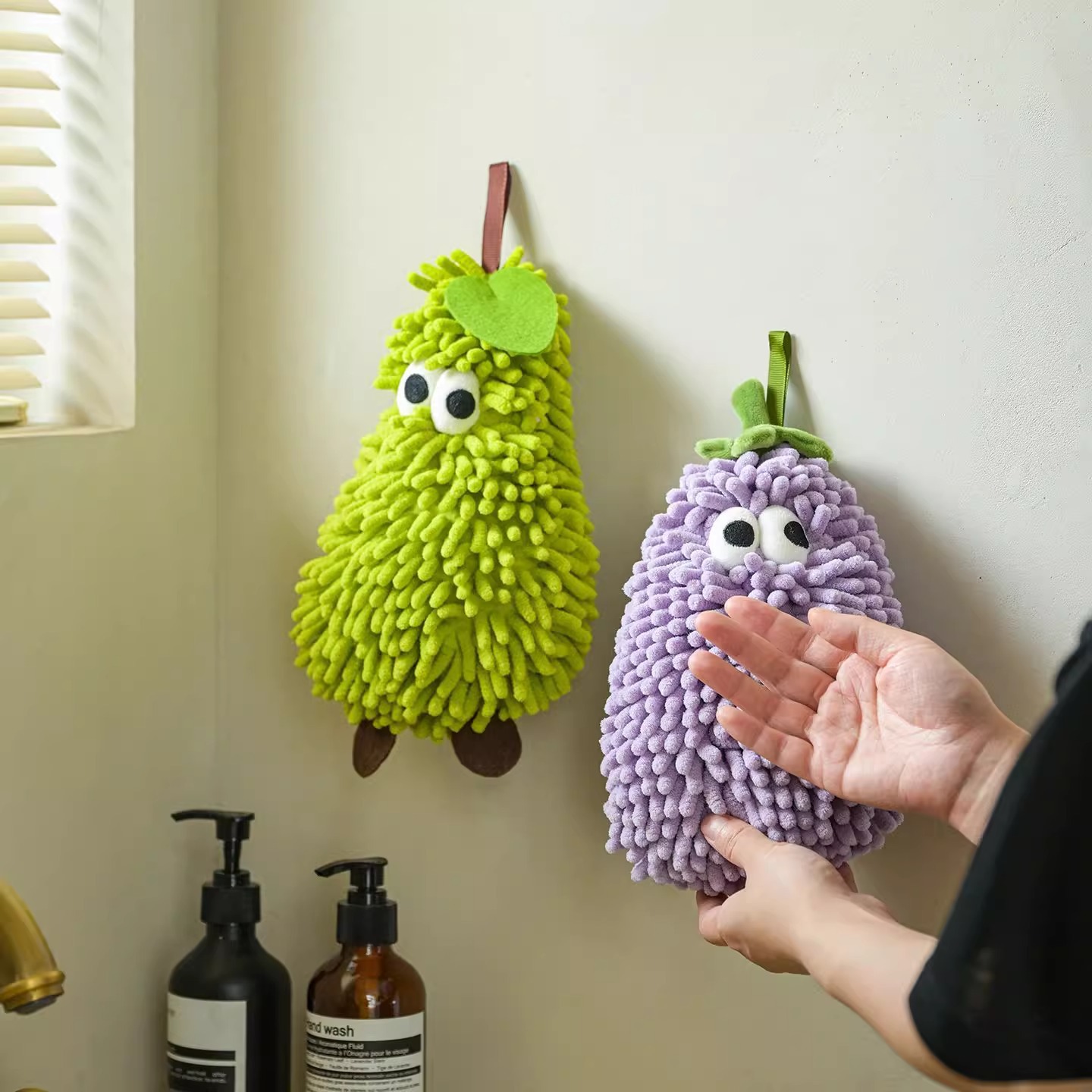 可爱水果擦手巾挂式加厚雪尼尔吸水巾卫生间厨房毛巾手帕卡通儿童