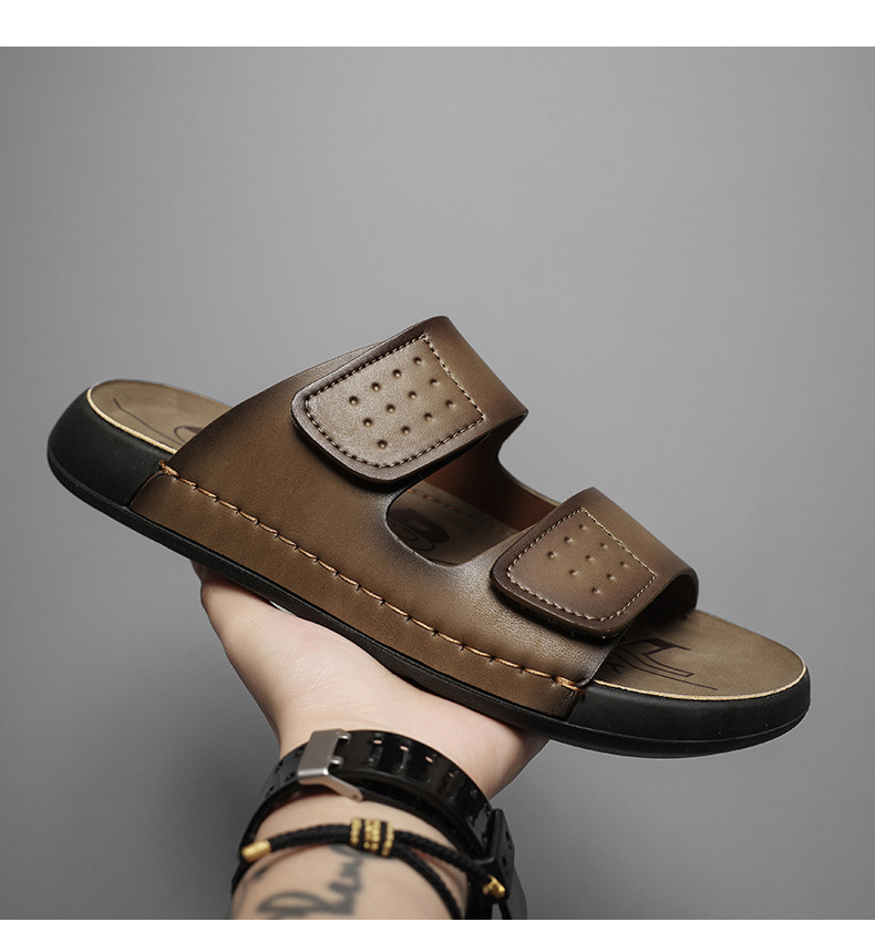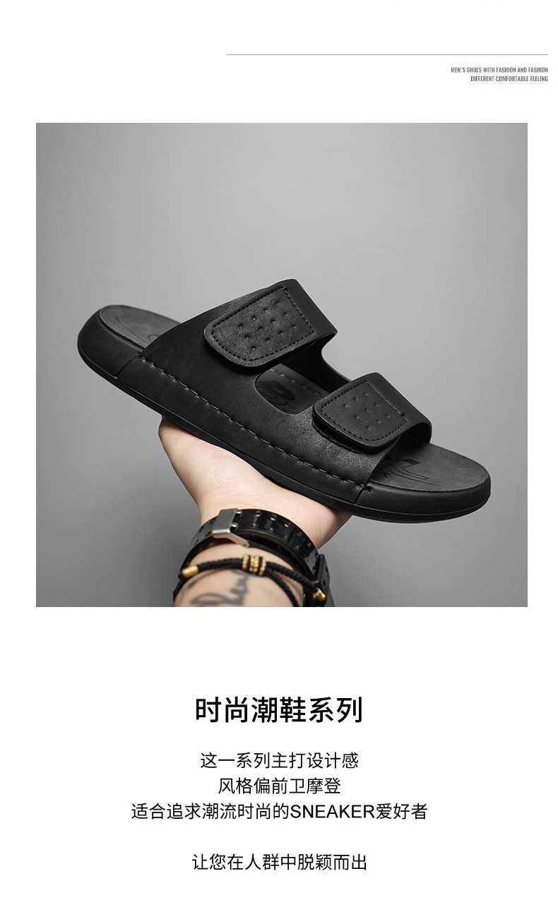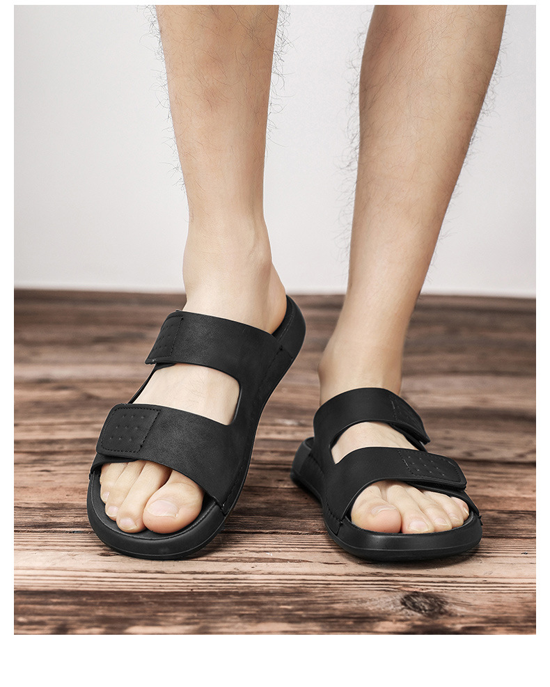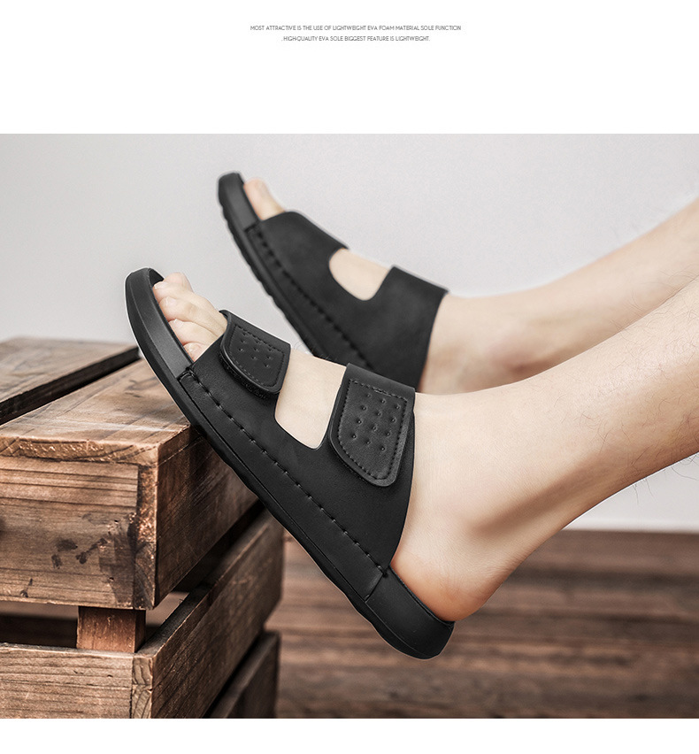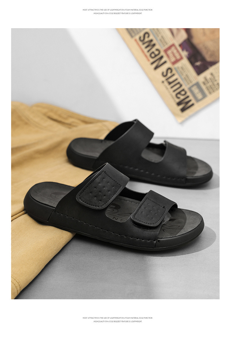 スリッパ男性2025新型夏外着カジュアル男性高級感マジックテープソフト底男性ビーチサンダル