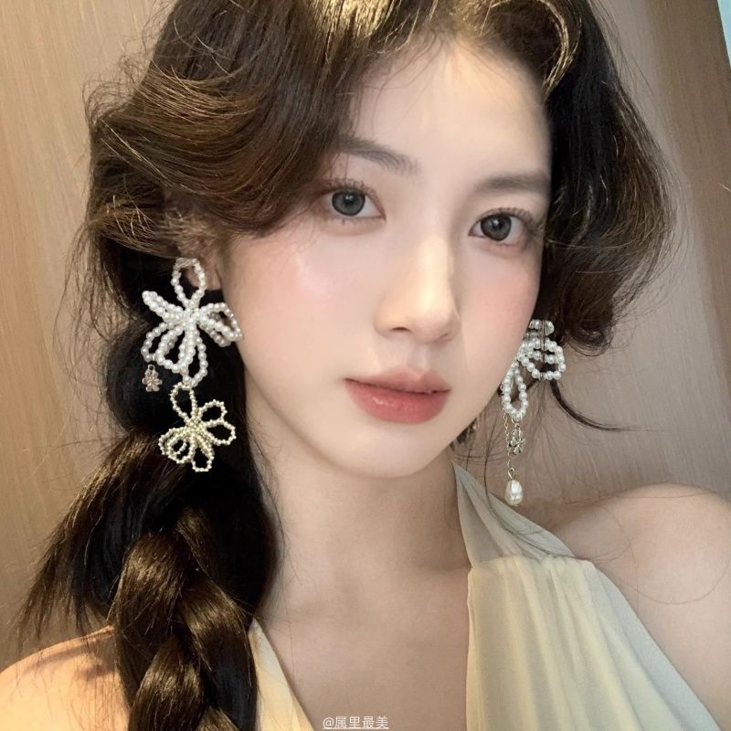 顔の小さい真珠の非対称の花の独特な耳のアクセサリの女性の高級な軽豪華な小さい大衆のイヤリングのファッションの気質の耳のクリップ
