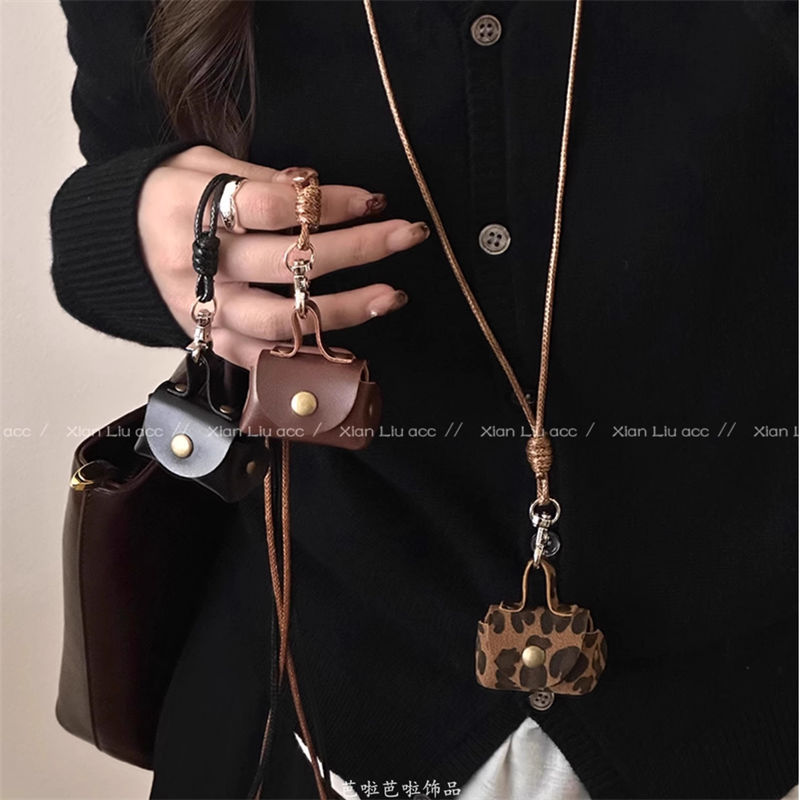 ヒョウ柄の革の小さい小銭入れのネックレスの女性のイヤホンのカバーは革の紐の長い毛の服のチェーンを掛けてバッグのアクセサリーを収納します。