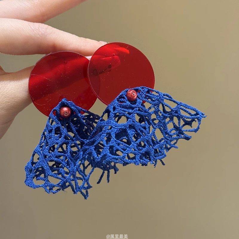 畳界虹食 ~ 新中国式レトロ赤青網糸衝突色イヤリング小衆デザイン感ピアス花嫁耳飾り