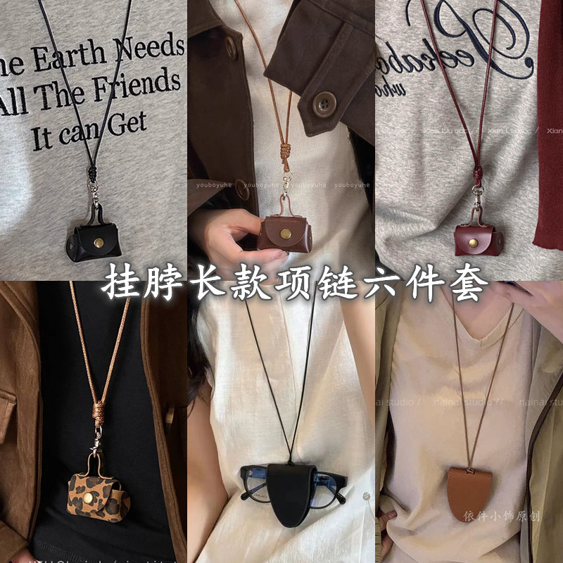 ヒョウ柄の革の小銭入れのペンダントのネックレスの女性のイヤホンのカバーの収納のカバンの長いタイプの首の秋冬のセーターのチェーンの装飾