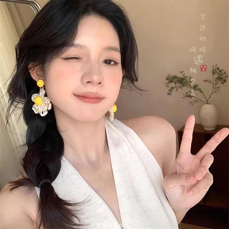 海辺のリゾートスタイルの黄色の花びらタッセルイヤリングボヘミアンスタイルイヤリングニッチ個性誇張イヤリング新製品