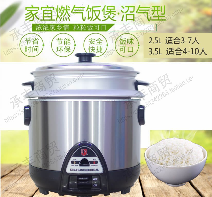 饭锅由广东生产,以沼气作为燃料,保持了传统明火煮饭的优点,令饭质达到最佳状态,饭味甘香可口,饭熟能自动关闭主燃气门,并继续驱动保温系统,是电饭锅无法比拟的。饭锅具有安全、方便、省时、节能等四大优点。