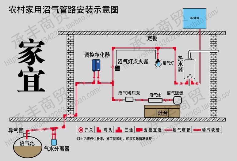 1、使用沼气压力大于8KPa时请把进气管口的沼气开关调至1.6KPa-8KPa以方便打火及产品能正常使用,沼池管路必须安装脱硫器,并定期更换脱硫剂。