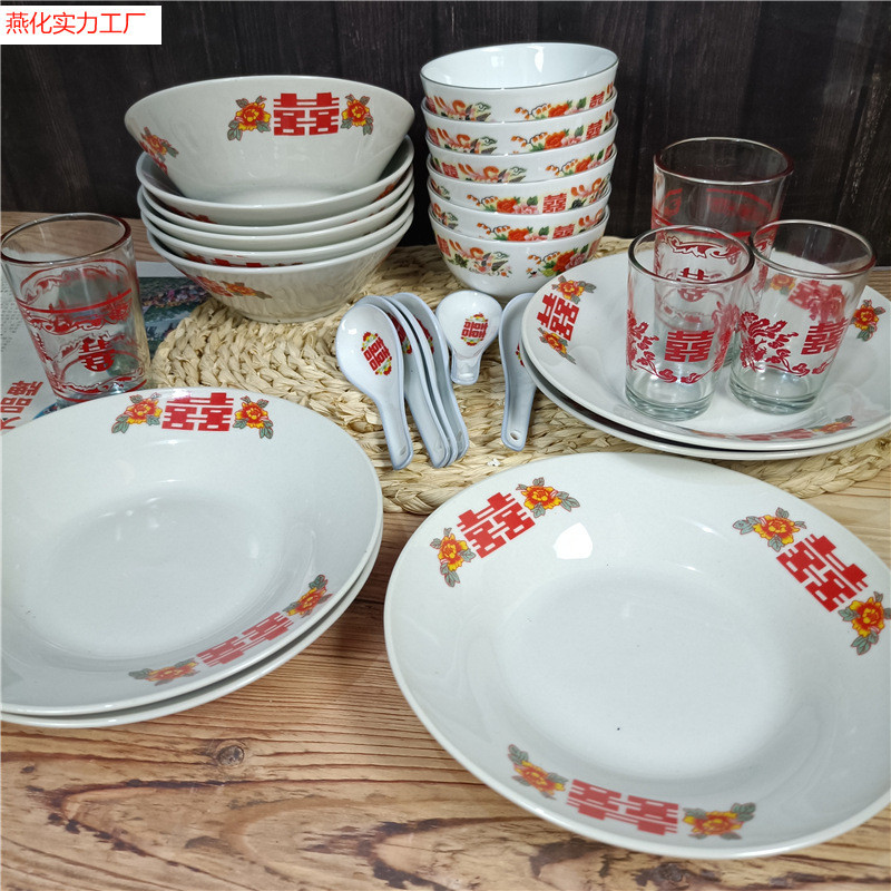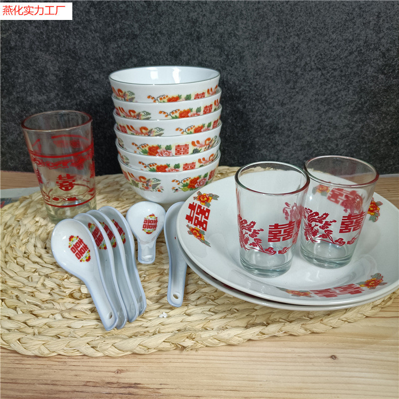 1丼,1丼,麺丼1個,7inch ボウル 1,8inch ボウル 1,ラウンド野菜プレート1枚,7inchロータスプレート 1枚,8inchロータスプレート 1枚,9inch ヘコウ ダブルハピネスプレート 1,200mlグラス 1個,100mlグラス 1個,小さなスプーン1杯,ダブルハピネスカップ 約200ml 1個,5.5紫緑の花 1個