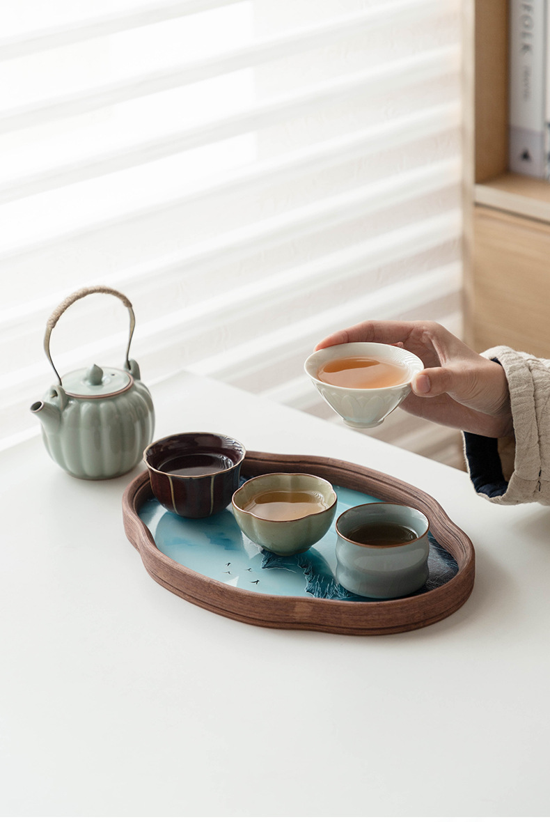 故宮五大名窯一壺四杯の乾いた泡皿の茶器セット
