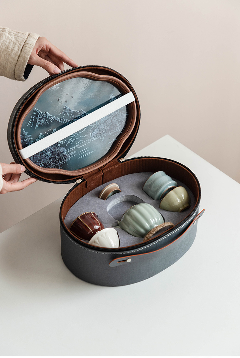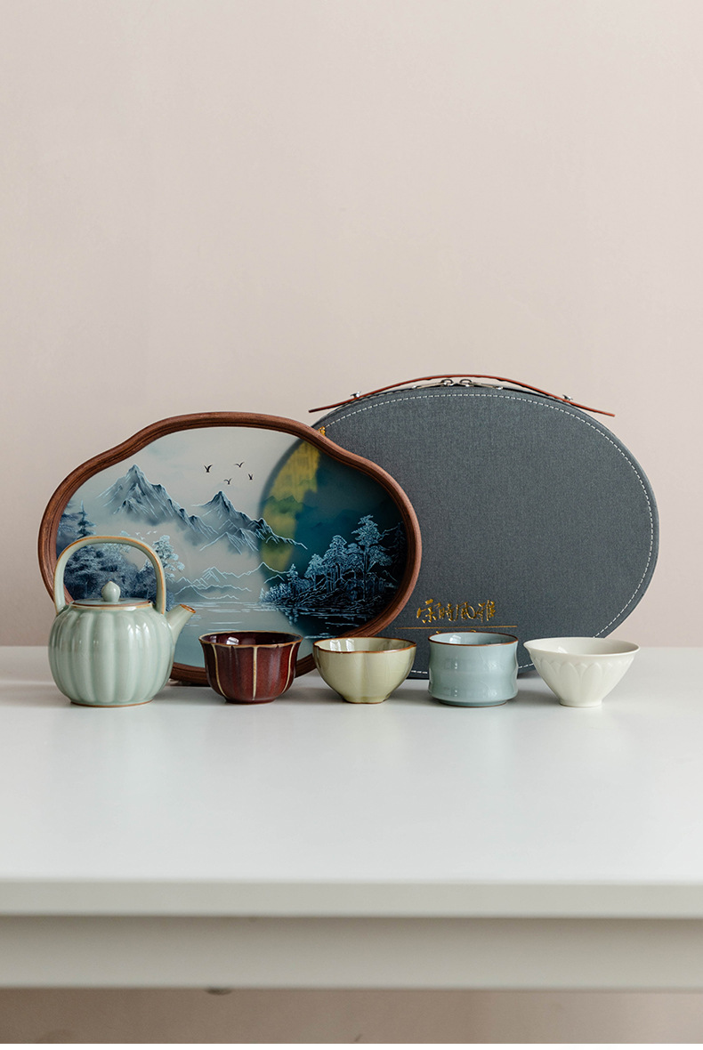 父の日アンティーク高級五大窯ティーセットポータブルトラベルカンフーティーセット1ポット4カップギフト