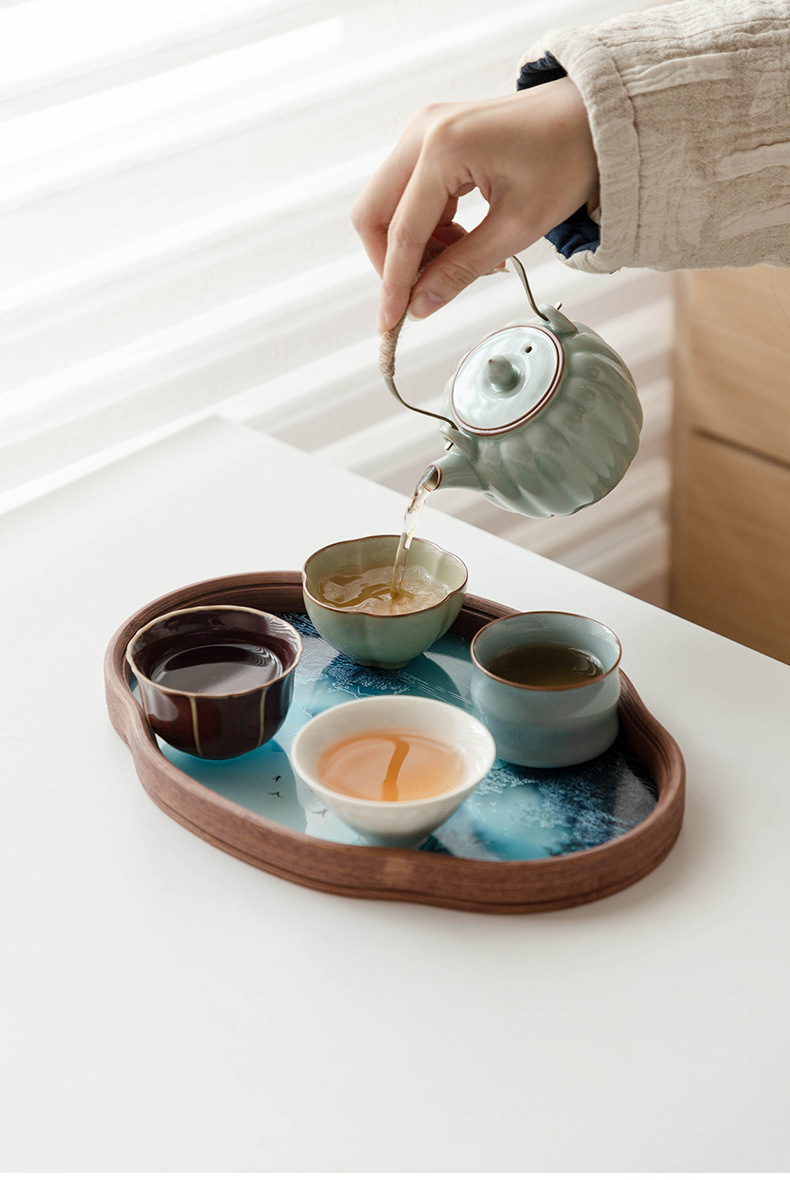 紫禁城文化創物の五大名窯茶器セット、家庭用功夫茶カップ、高級陶磁器茶器ギフト、上司への贈り物