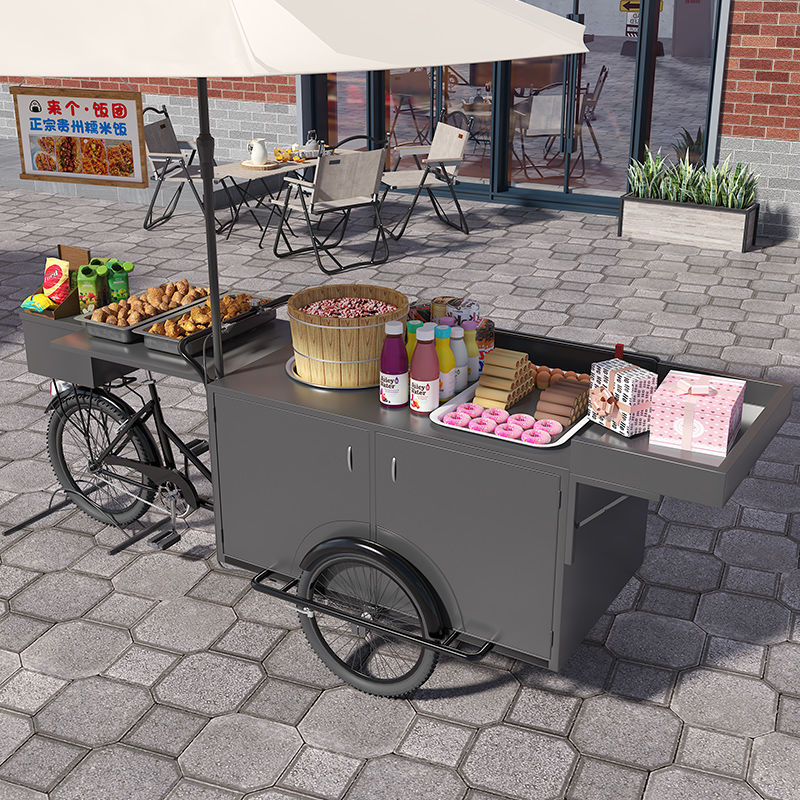 戸外鉄芸花車移動ブース販売促進三輪販売車グルメ街観光地区夜市に露店を出して食堂車を手押しする