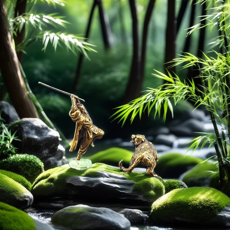 銅メッキ古風築山シーン景陽岡武松打虎大虫水槽盆栽奇石造景模型置物