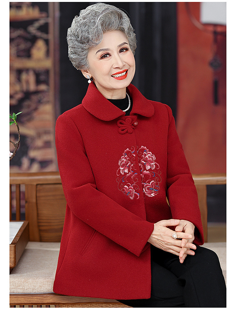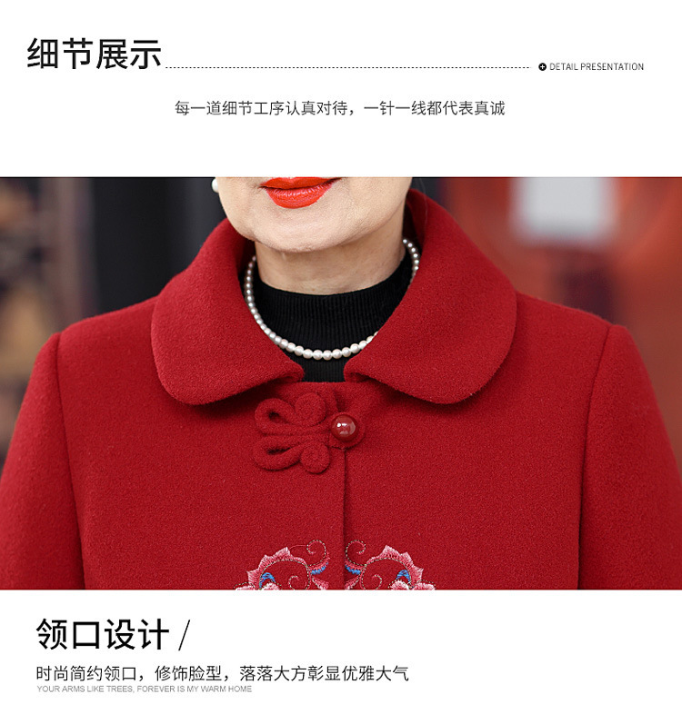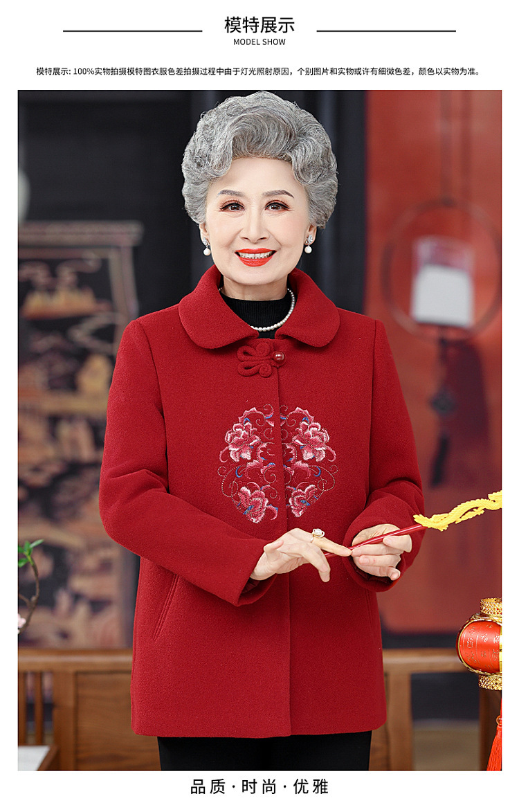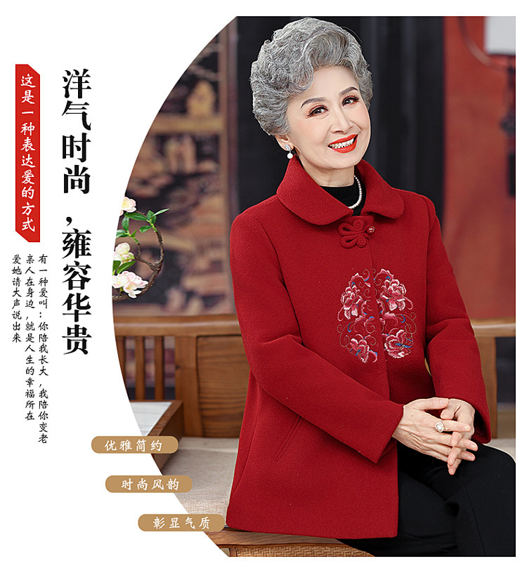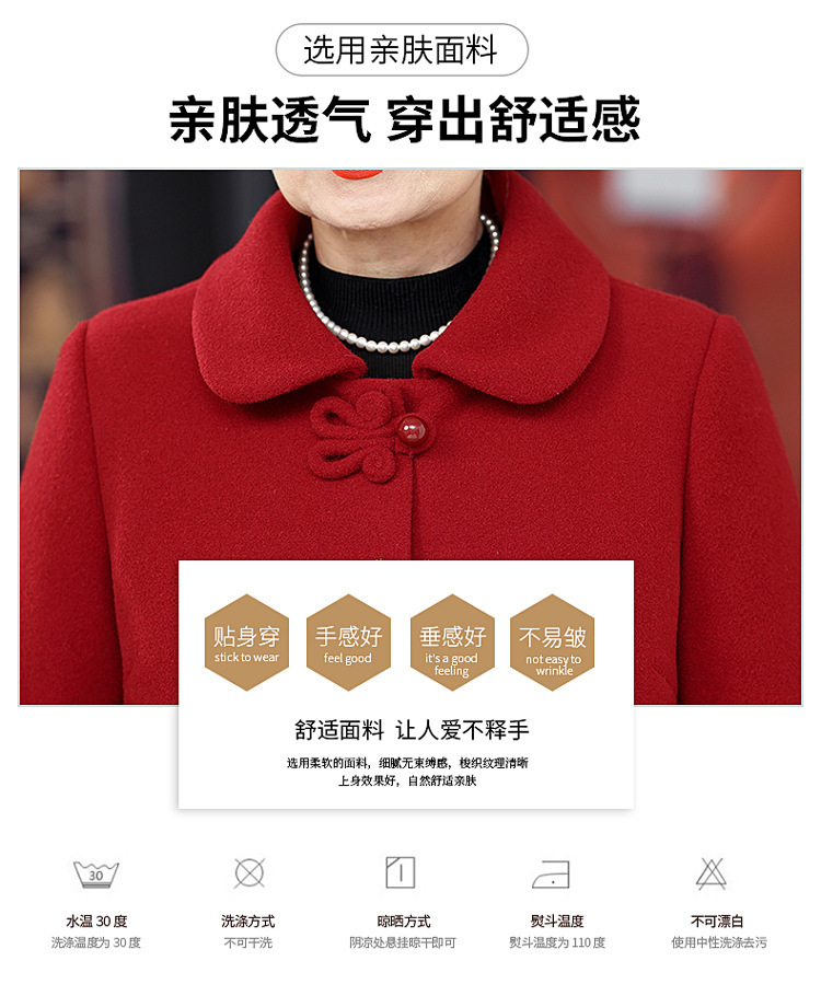 お母さんの秋の服装の気高い両面のカシミヤのコートの女性の2024の新型の秋冬の中高年のファッションのウールのコート