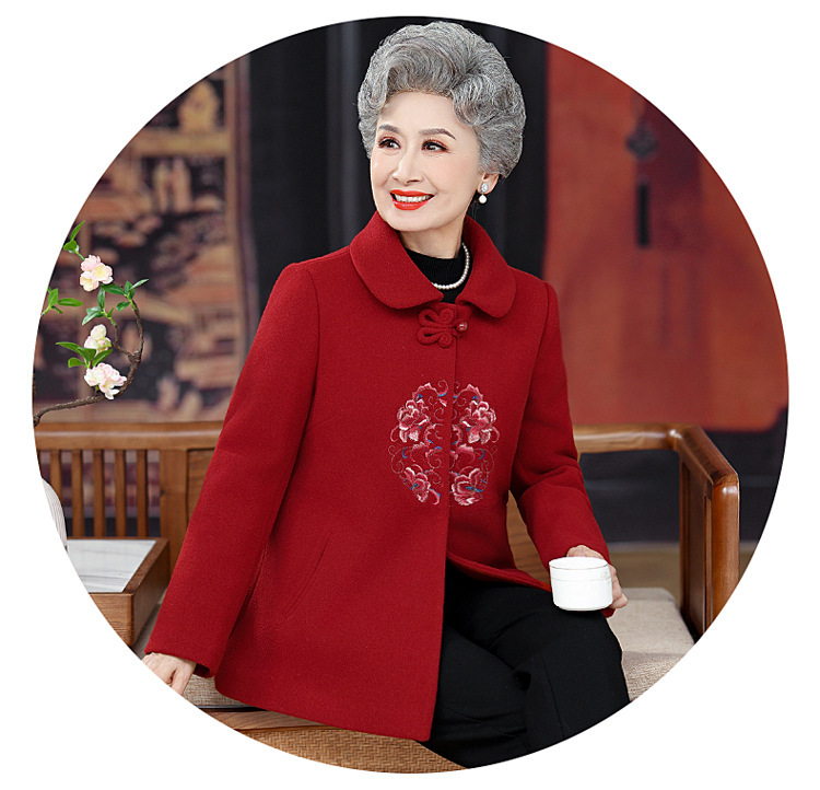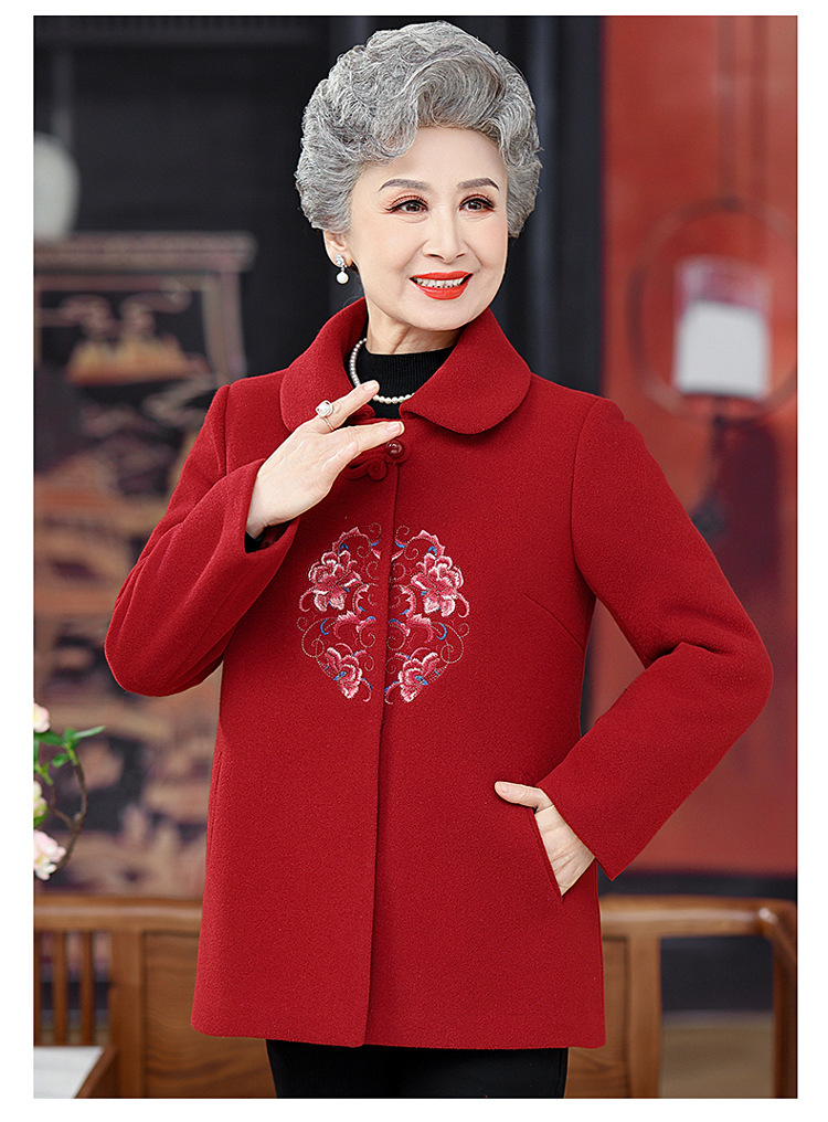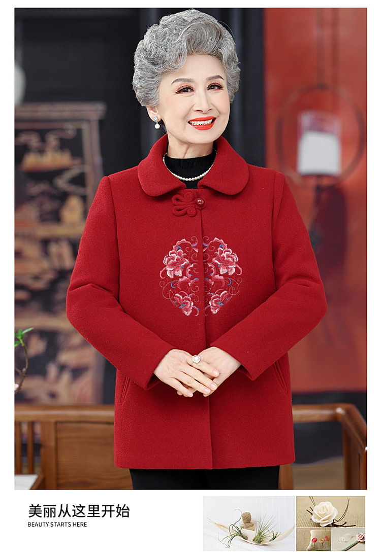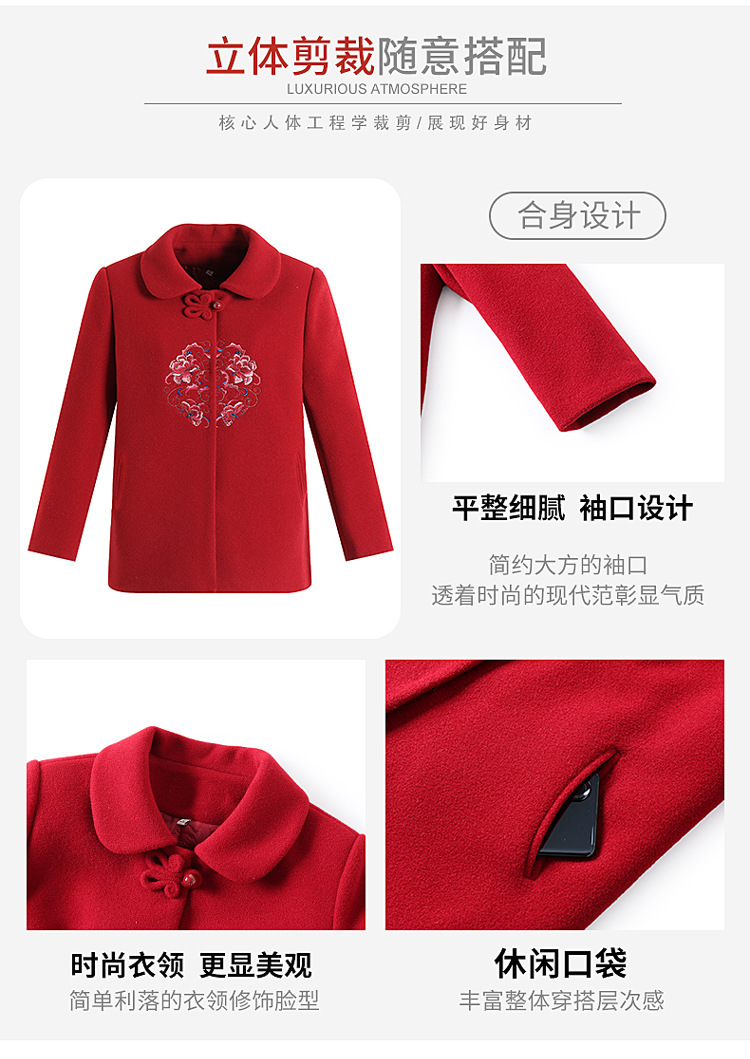 お母さんの秋の服装の気高い両面のカシミヤのコートの女性の2024の新型の秋冬の中高年のファッションのウールのコート