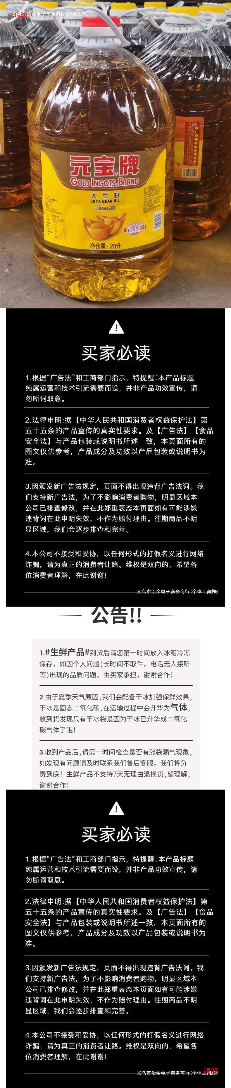 元宝牌大豆油20升商用大桶烘培饭店餐饮食用油5升金龙鱼大豆油