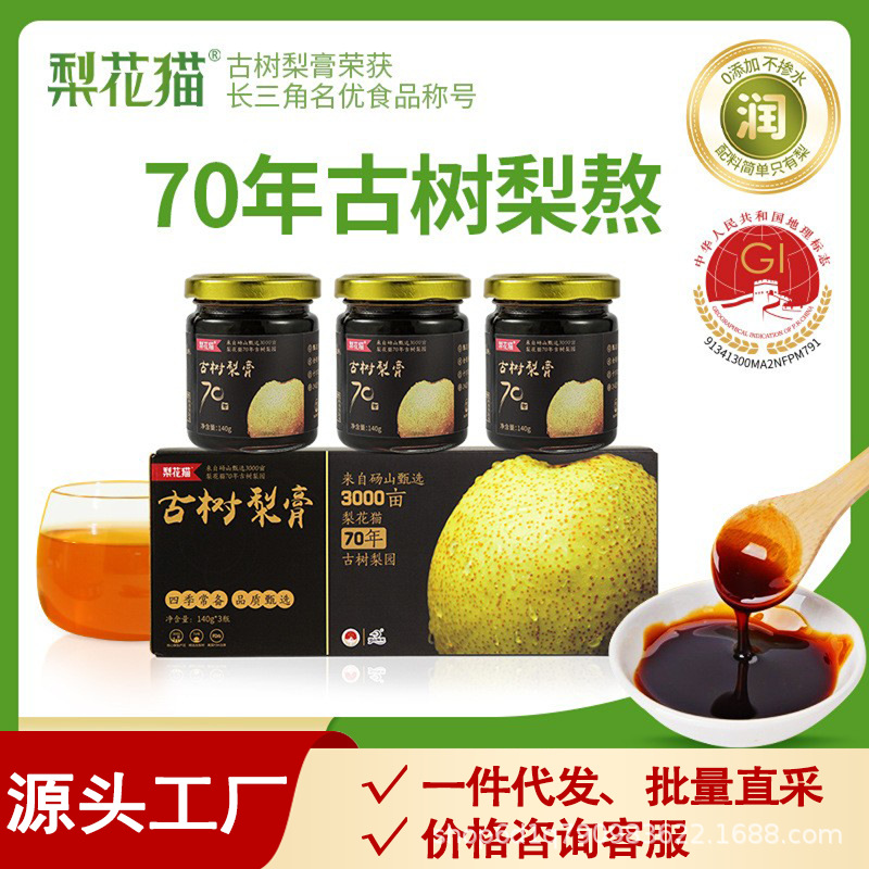 【3瓶装赠10条】梨花猫70年古树梨膏佳节送礼砀山酥梨膏牌直发