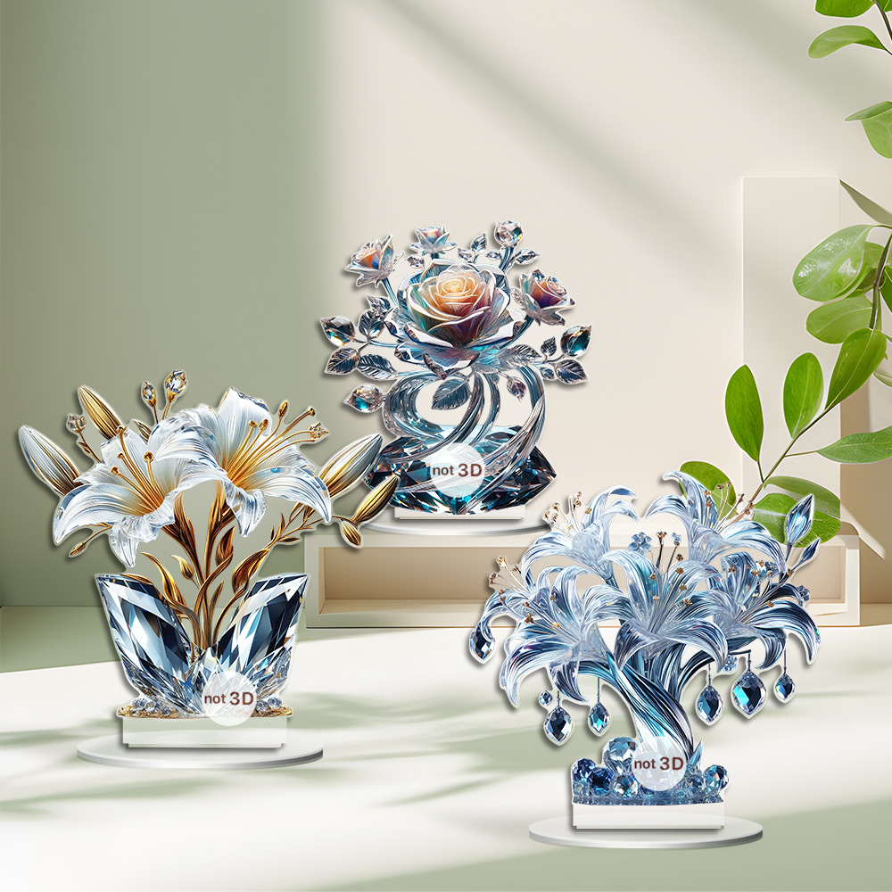 国境を越えた爆発的なカラフルな百合バラシリーズアクリル書斎の寝室のリビングルームのテーブルの装飾