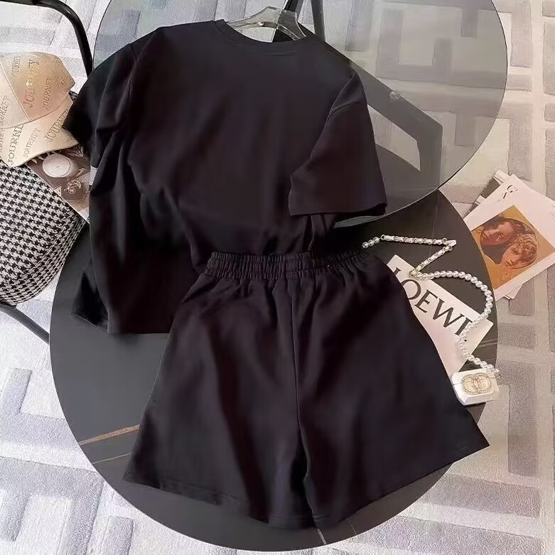 2025夏の新しいサイズの太った妹のスーツはカジュアルなスポーツの洋風の半袖の半ズボンの2セットの女性の潮をスーツします。