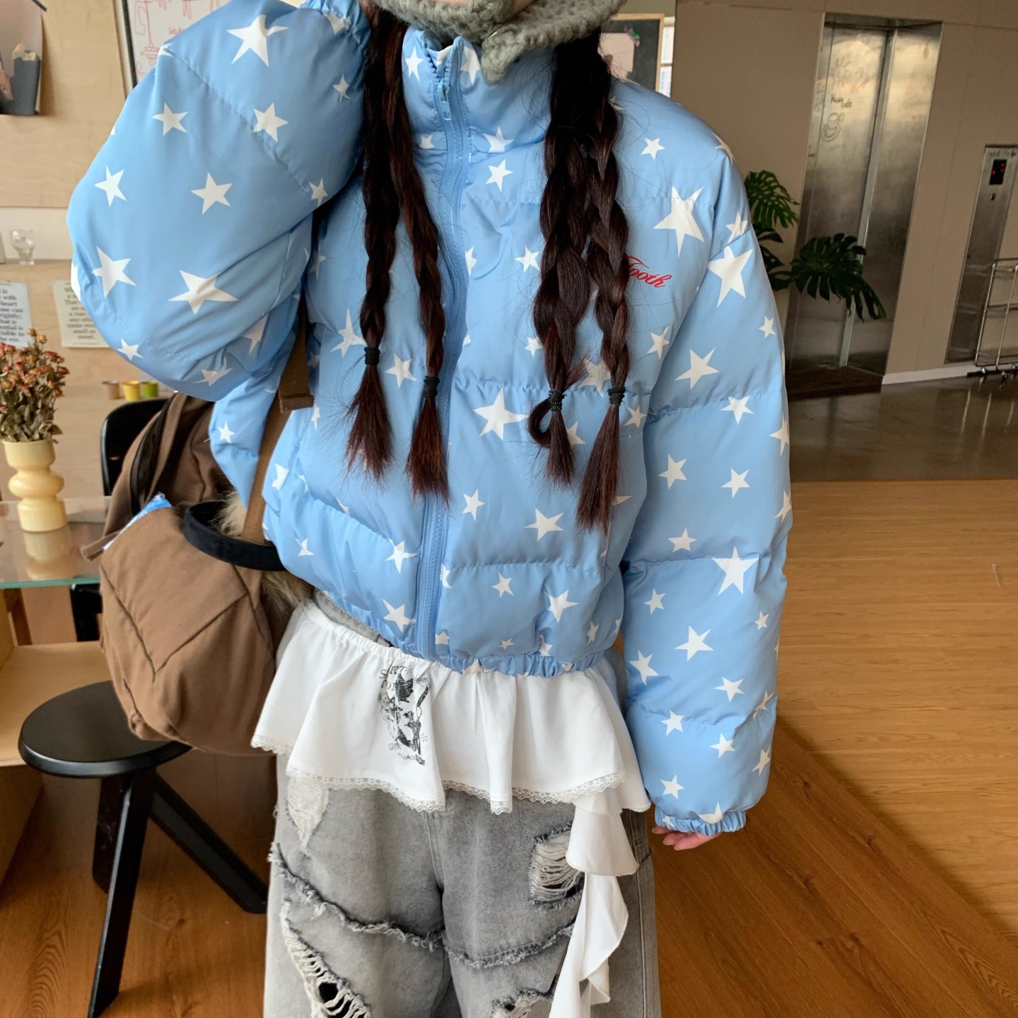 美式复古星星满印立领棉服外套女冬季新款加厚面包服棉衣