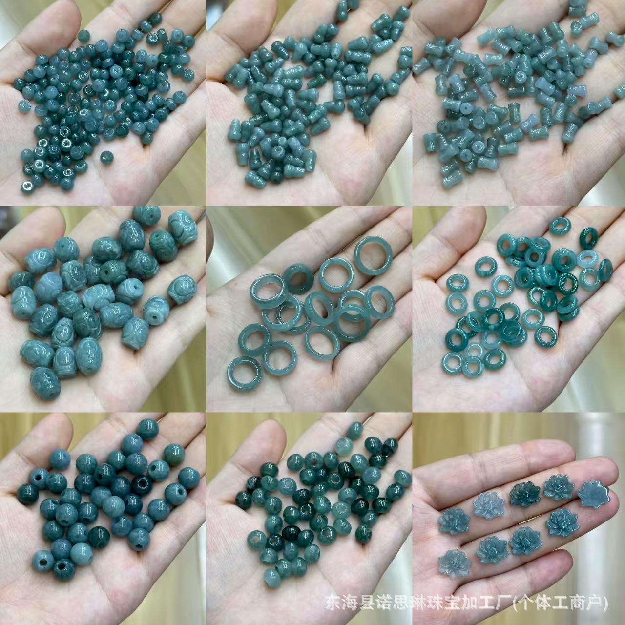 天然蓝水翡翠圆珠隔片跑环貔貅桶珠散珠配件DIY手链项链饰品配件