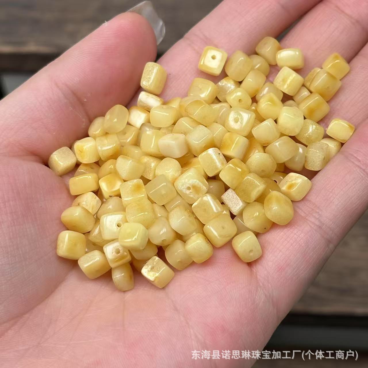 天然俄料蜜蜡小方糖随行散珠配饰 文玩DIY饰品配件 纹路细腻 奶白