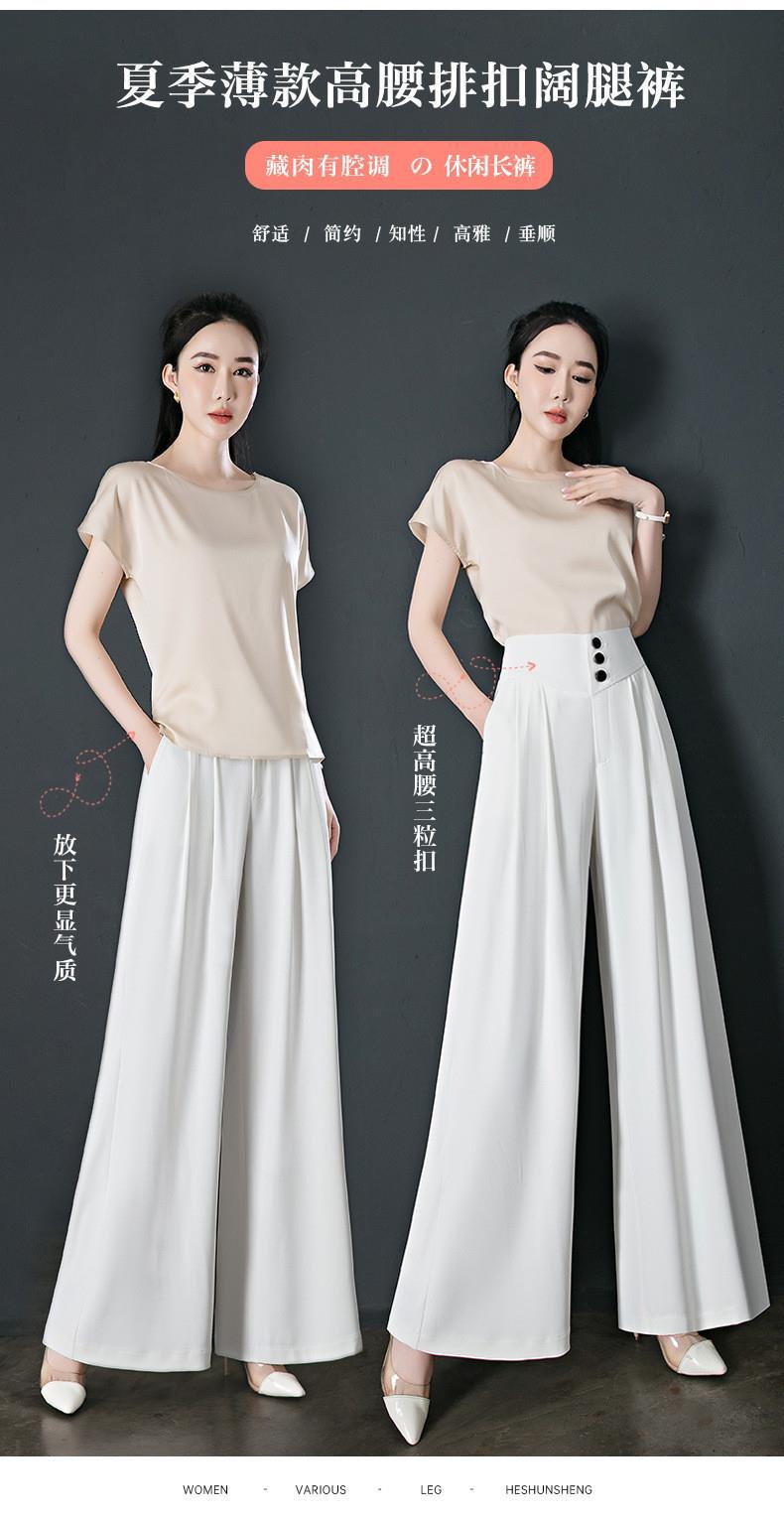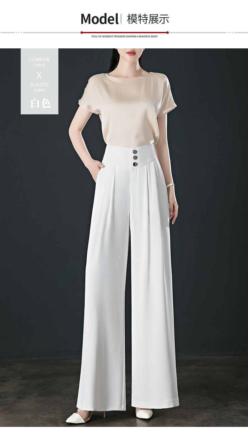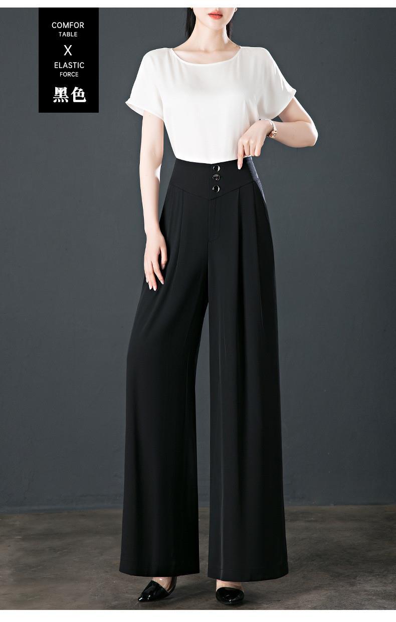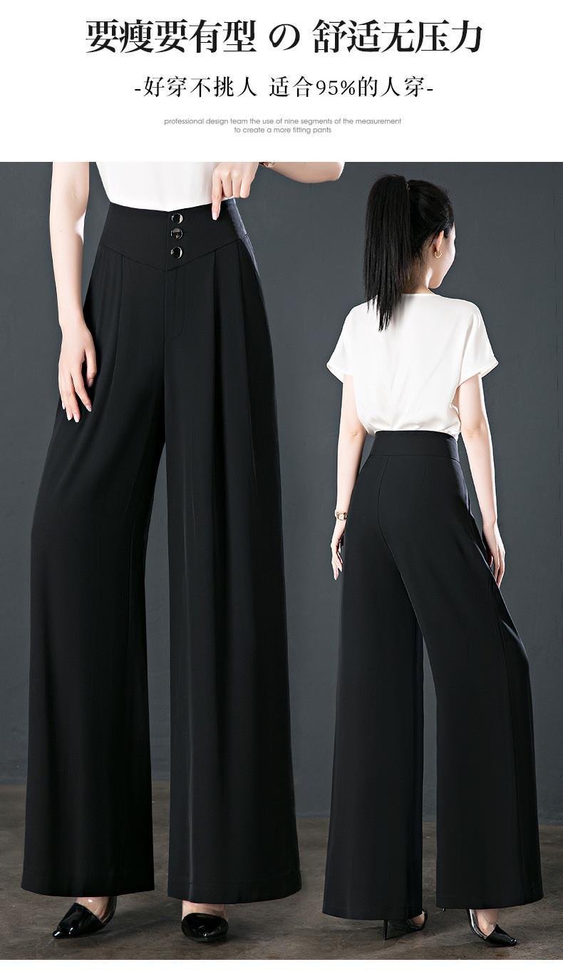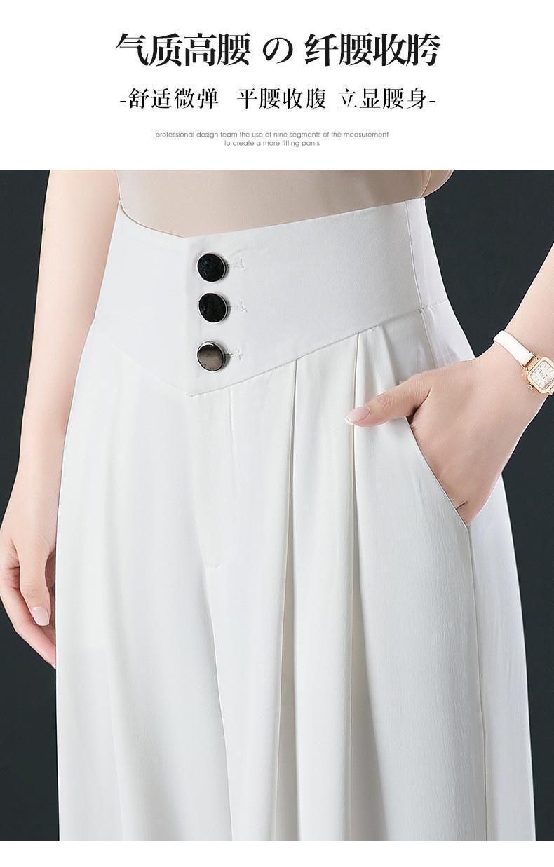 氷糸高腰広脚ズボン夏の女性の薄いタイプのペンダント感のあるズボンの女性の小さい中年のお母さんのカジュアルなズボン