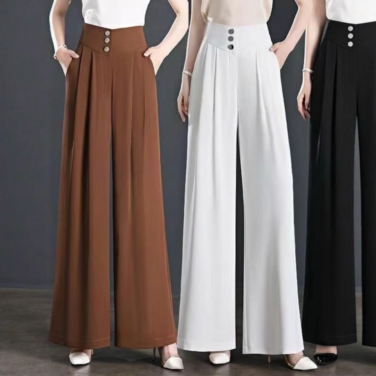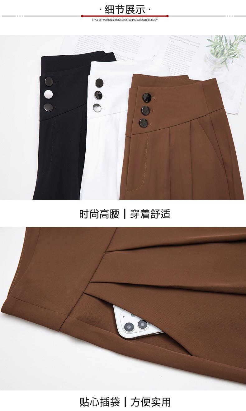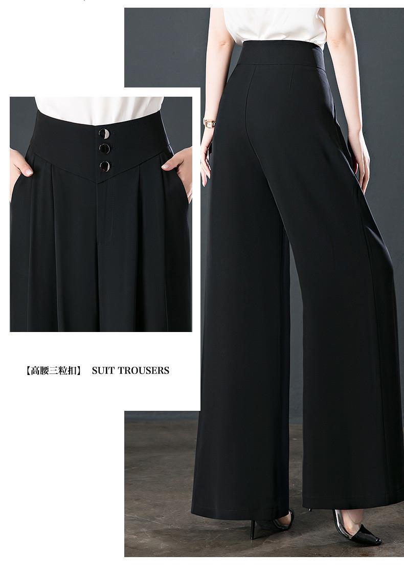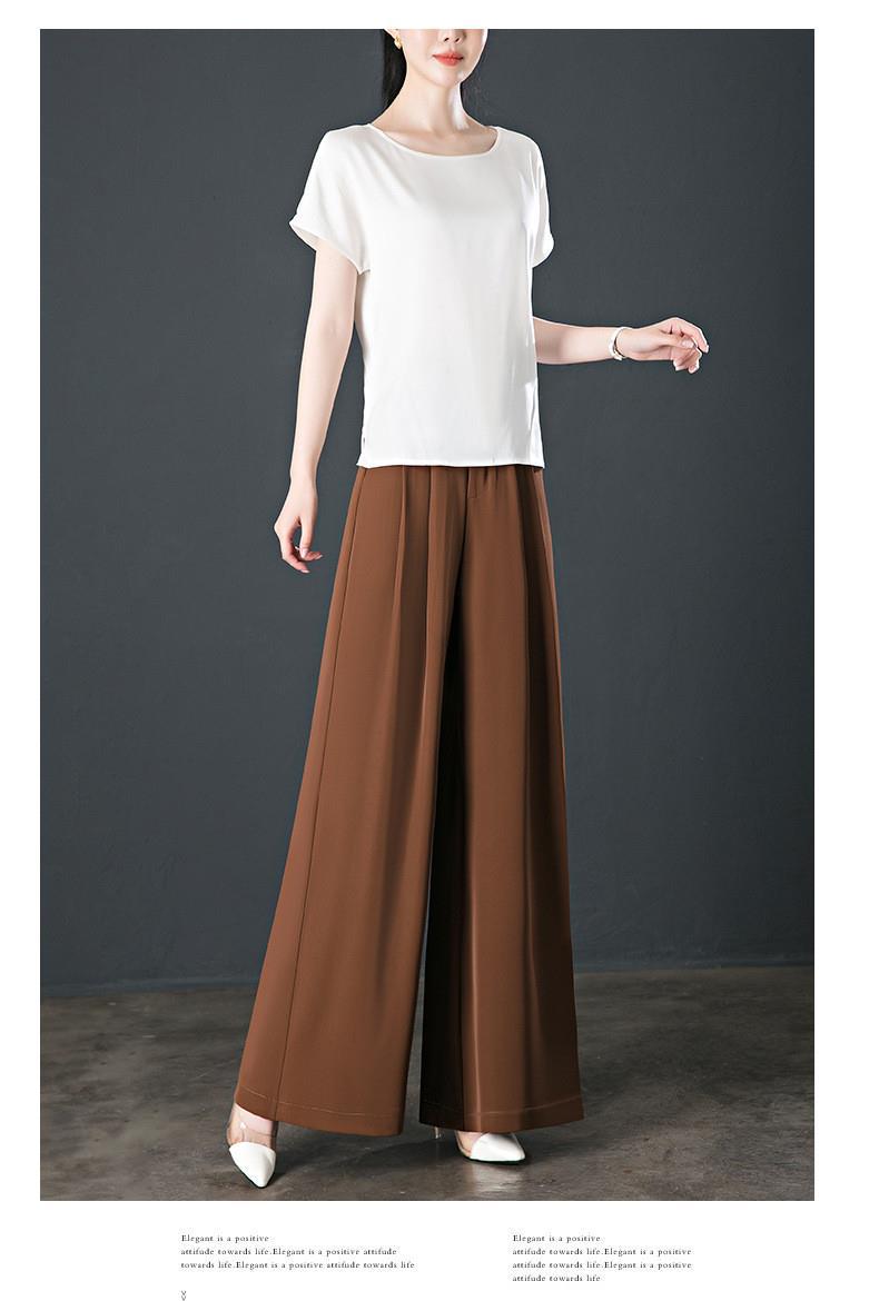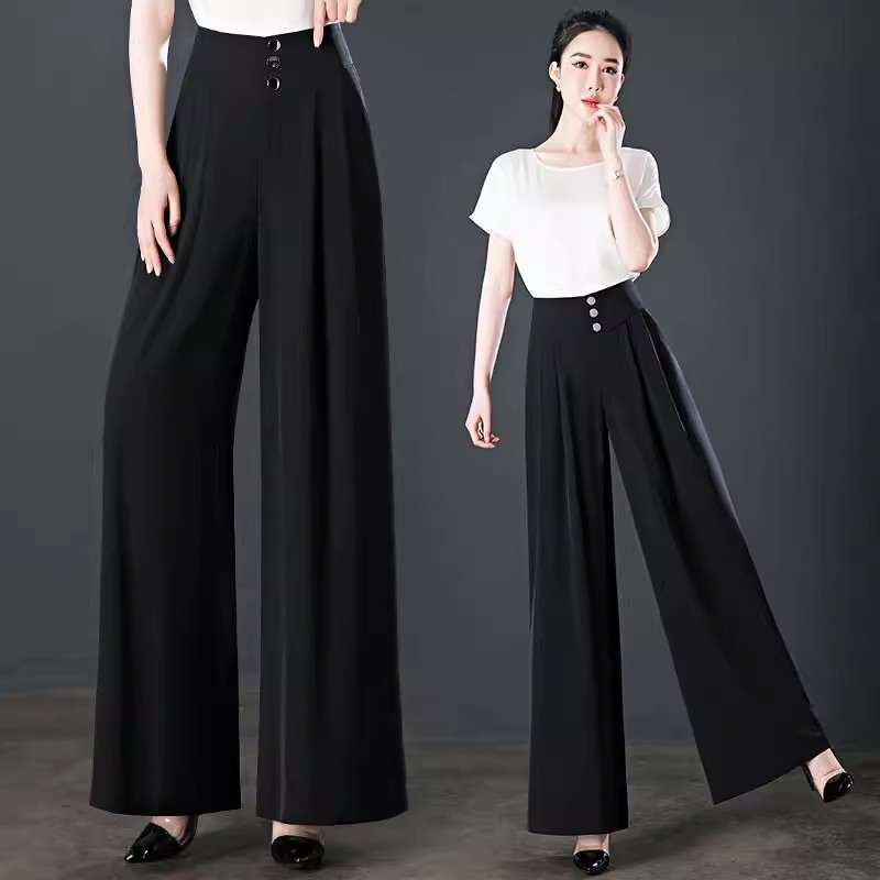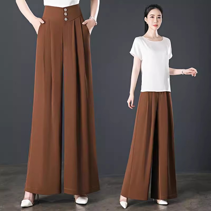 氷糸高腰広脚ズボン夏の女性の薄いタイプのペンダント感のあるズボンの女性の小さい中年のお母さんのカジュアルなズボン