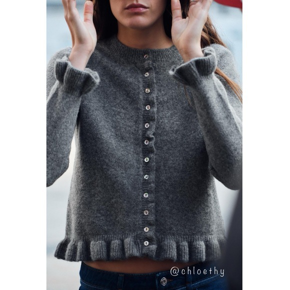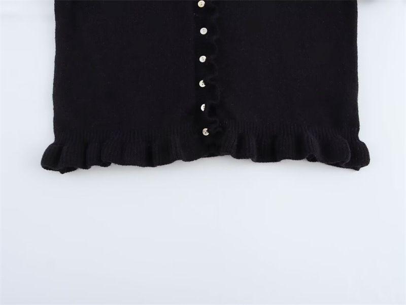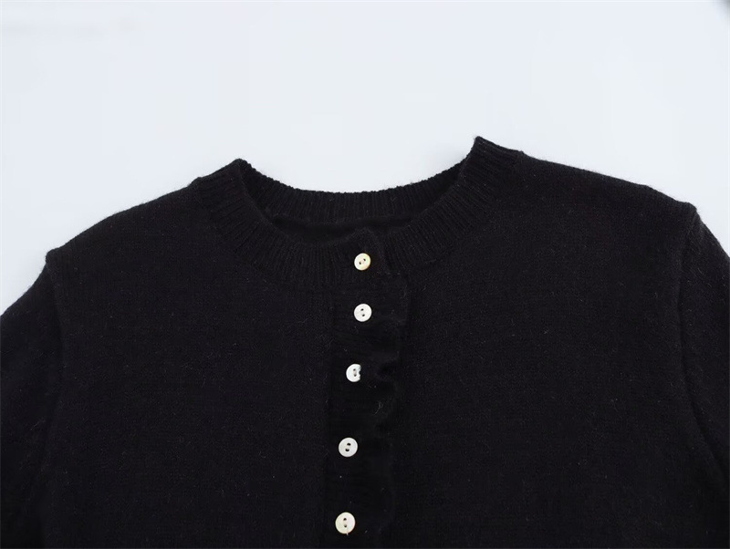 跨境欧美2025秋冬新款木耳边衣摆喇叭袖口圆领休闲百搭针织开衫