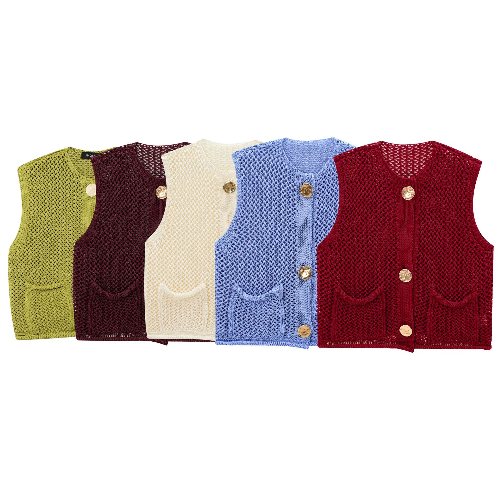 外国貿易 2024 ヨーロッパとアメリカの秋の新しいスタイルのラウンドネックシンプルで多用途の積層装飾ニットジャケット 2756114