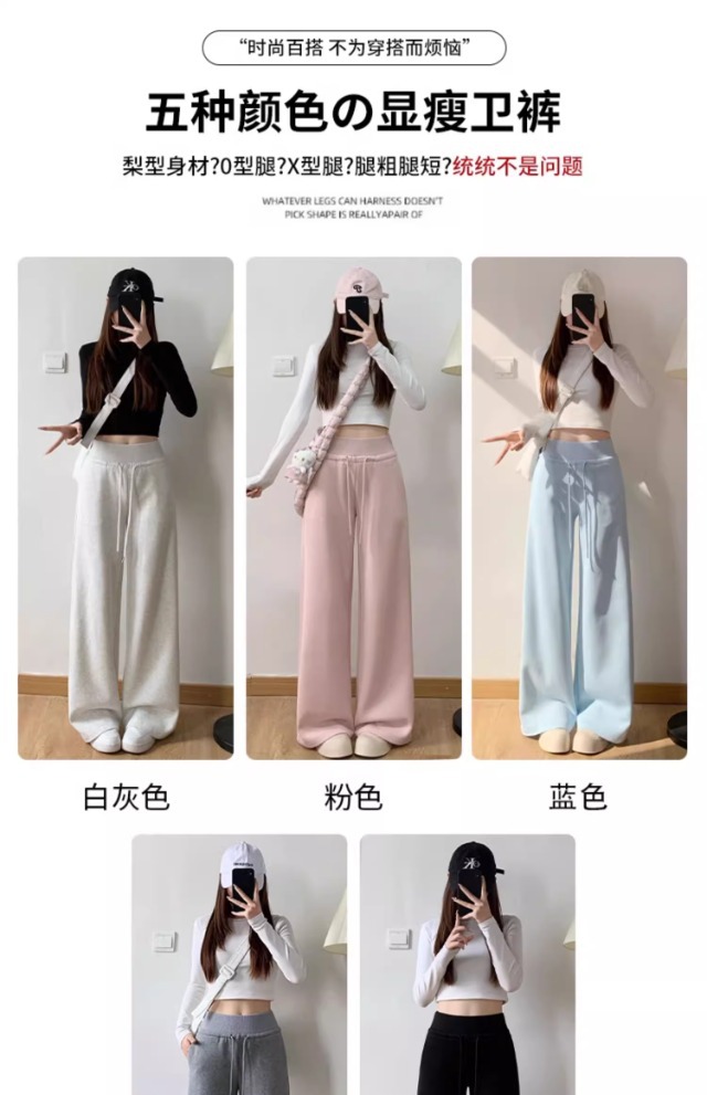 2着のスポーツズボンの女性春秋夏2024新型のゆったりしたストレートカジュアル2着のワイドグレーのアメリカンパンツ
