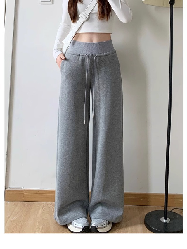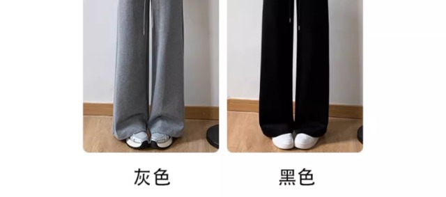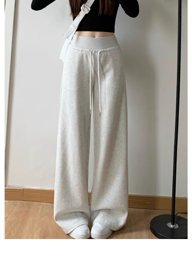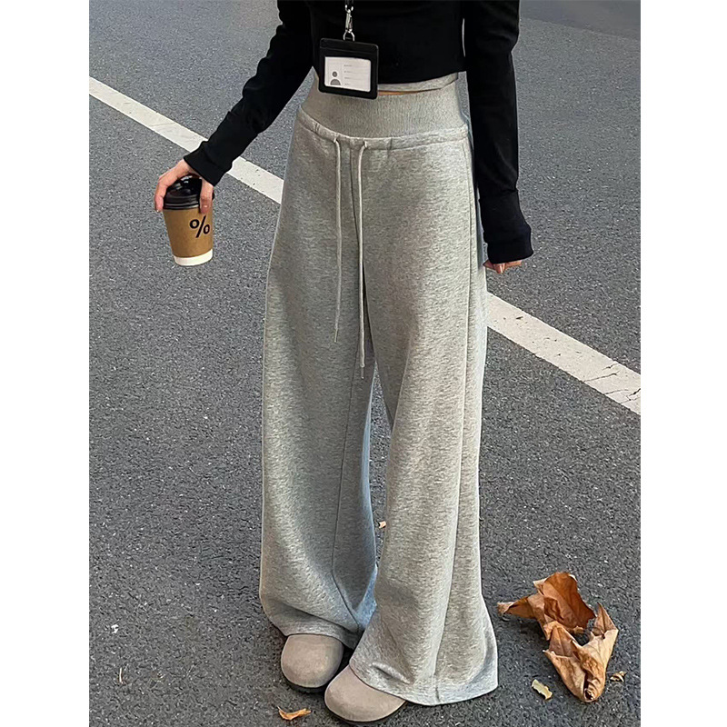灰色美式运动裤女春新款垂感高腰休闲直筒卫裤抽绳lulu同款阔腿裤