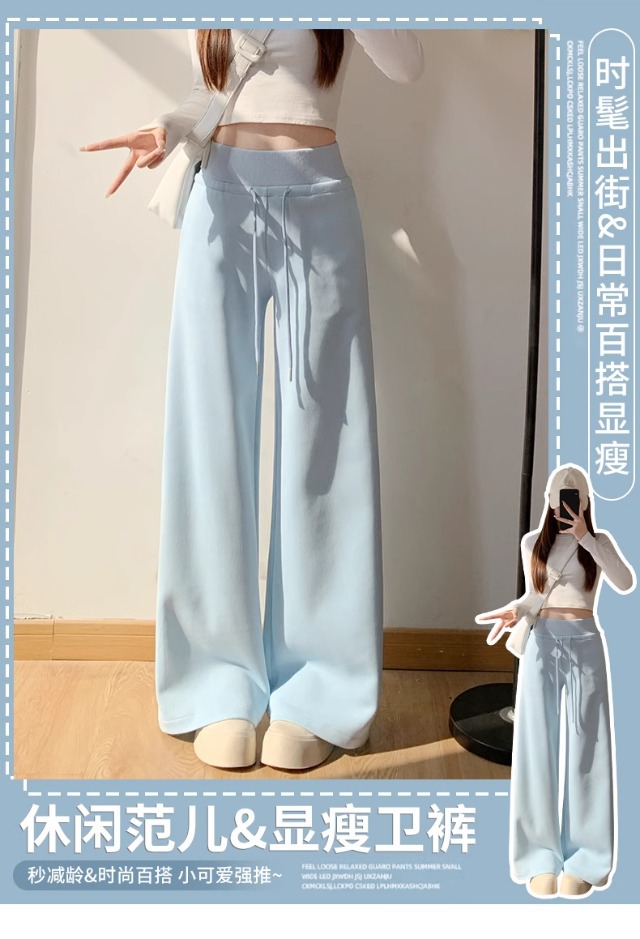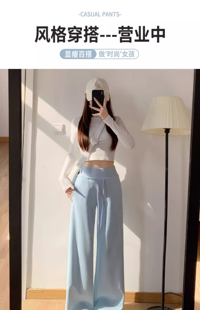 アメリカの青いスポーツズボンの女性春秋の新型のハイウエストの垂直感のカジュアルなストレートのズボンのゆったりしている広腿のズボンは地の衛のズボンを引きずっています。