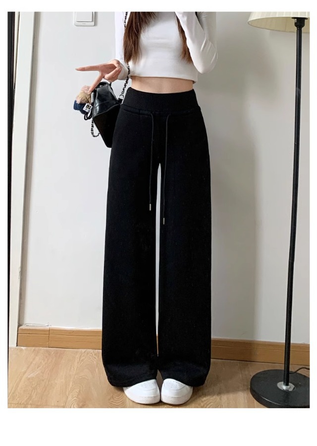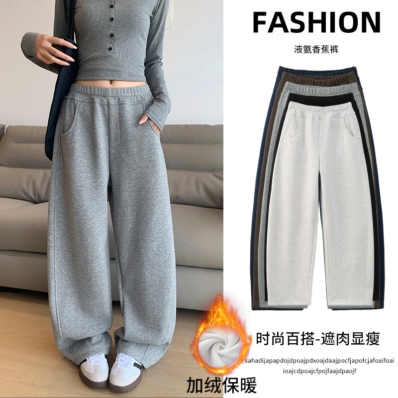 新款香蕉裤阔腿裤子女秋冬加绒加厚高腰休闲直筒运动卫裤子女款