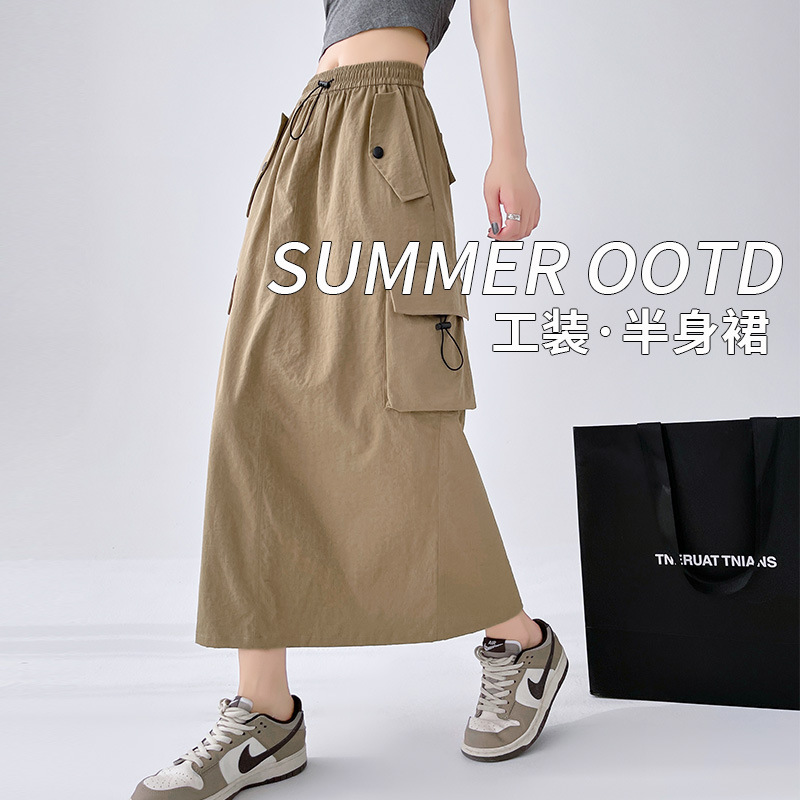 アメリカの工装スカートの女性の春夏2025年の新型のテンションの高い腰のa字は痩せています。